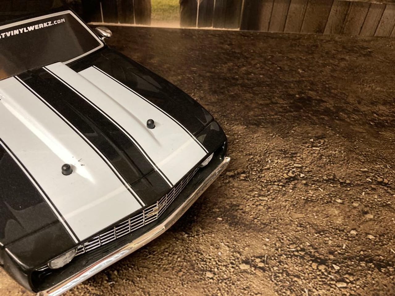 Buckaroo Brake Barn - Vinyl RC Car Backdrop. Howdy, y’all! Welcome to the Buckaroo Brake Barn, where the dust never settles, and the soda machine’s got more rust than a tractor in a rainstorm! This self-stick vinyl backdrop will transport your RC cars and trucks to a good ol’ southern garage, complete with: One 36 inch x 24 inch back wall featuring peeling paint and cobwebs that add a touch of rustic charm. One 36 inch x 24 inch floor that’s smoother than a cowboy’s drawl. Two 24 inch x 24 inch side walls with a lantern that’s seen more moons than a hound dog. Perfect for RC car enthusiasts who want to add a splash of southern hospitality and a dash of humor to their photo shoots. It’s like giving your RC car a mini Wild West adventure, minus the tumbleweeds and saloon brawls. Ideal for hobbyists looking to inject some fun and personality into their garage decor.