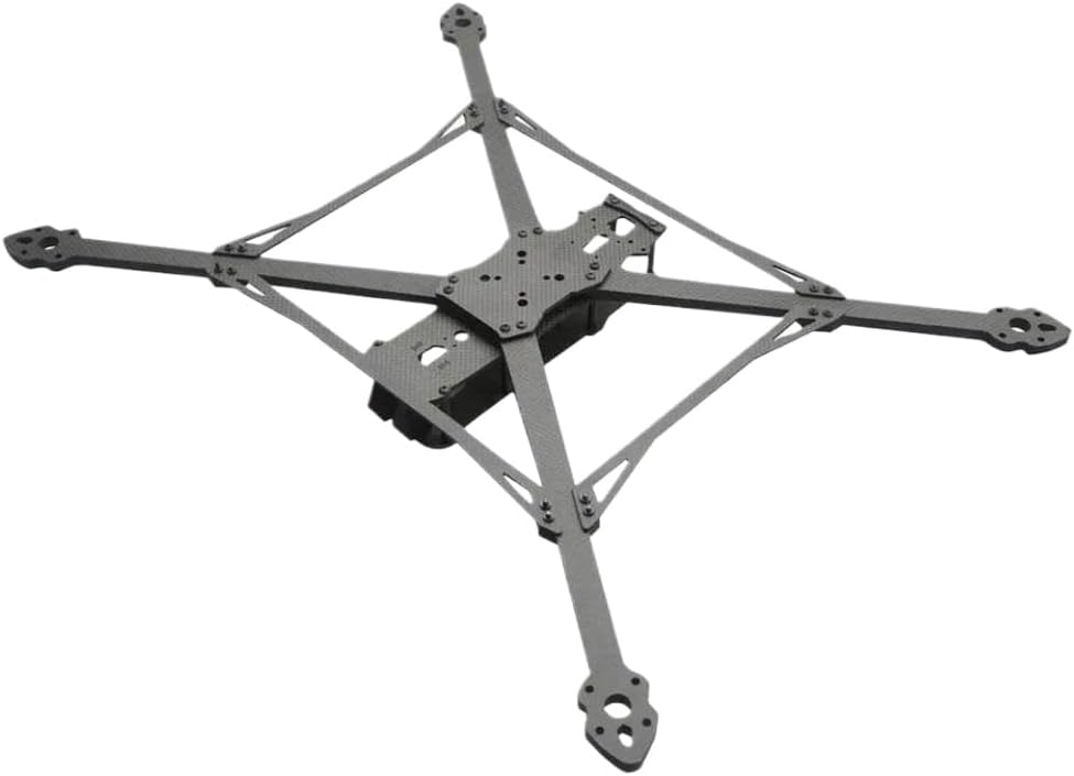 MARK4 V3 Pro Carbon Fiber Drone Frame Kit available in two configurations: 13inch 570mm wheelbase and 15inch 680mm wheelbase.Both versions feature an 8mm arm thickness.Upper plate thickness is 2.0mm.Bottom plate thickness is 3.0mm.Lower fixed plate thickness is 3.0mm.Camera side plate thickness is 2.5mm.Front lip plate thickness is 2.5mm.Rear lip plate thickness is 2.5mm.Surrounding reinforcement thickness is 3.0mm.Arm thickness is 8.0mm.Weight is 560g for the 13inch version and 590g for the 15inch version.Camera mounting spacing is 19mm.Flight controller mounting hole spacing supports 20x20mm and 30.5x30.5mm patterns.VTX mounting hole spacing supports 20x20mm and 30.5x30.5mm patterns.Motor mounting hole spacing is 21x21mm.Motor screw hole diameter is 4mm.Compatible with 13inch propellers and motors including 4215, 4218, 4312, and A4320.Compatible with 15inch propellers and motors including 4218, 4312, and A4320. This is not an OEM product.Brand/model references are included solely to assist with compatibility identification.