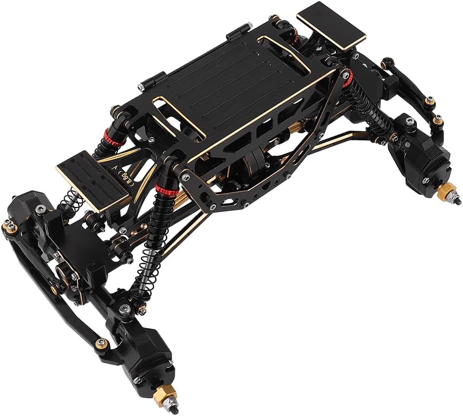 AX24 Brass Full Chassis Frame with Gearbox Wheel Rim Portal Axle Assembled for 1/24 RC Crawler Axial AX24 Upgrade PartsMateral:Brass+Aluminum (Shock absorber)Except the shock absorber, all other accessories are made of brassFeature:Four wheels steering , front and rear axle with Steering rod and servo mount.Weight of car frame :398gCar frame with rim:558gFit for AX24Note: package without car shell !!!