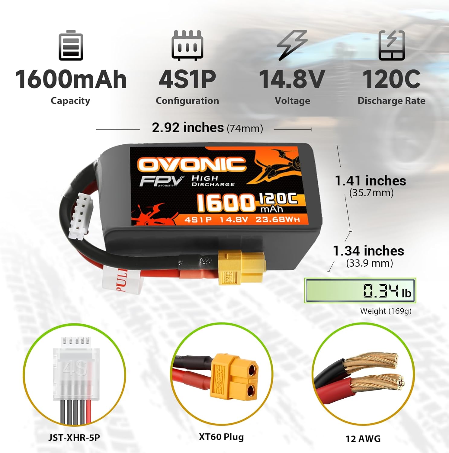 OVONIC 4S 1600mAh Lipo Battery 14.8V 120C Battery with XT60 Plug for RC Car Truck RC Vehicles Boat Drone RC Airplane Quadcopter Helicopter FPV Racing Hobby Models [1 Package Including 2 Batteries]