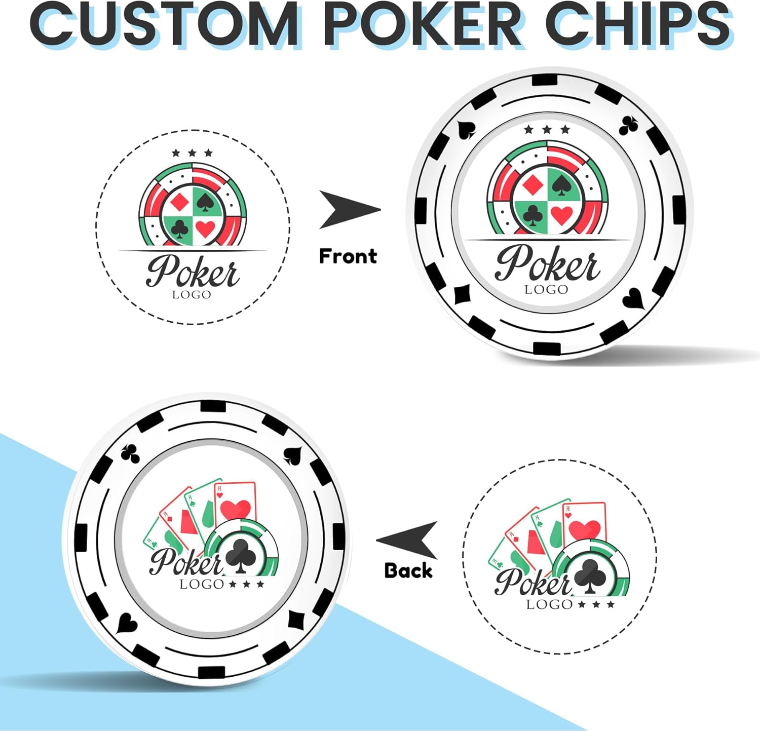Product Description:The Custom Poker Chips can be used for casinos, entertainment venues, home parties, corporate gifts, beverage tokens, school points accumulation, wedding souvenirs, business cards, holiday gifts, customized a set of your own Drink Plastic Tokens Chips to unleash your creativity, Don't be hesitate, make your event unforgettable with our Personalized Poker Chips Tokens!Product Specification:Product Name: Custom Poker Chips with LogoMaterial: ABS composite materialQuality: 100-1000PCSColor: black, blue, yellow, red, orange, pink, white, rose red, greenDiameter: 37mmThick: 2.5mmFeatures:- Drink Chips Token Made of high quality ABS material, waterproof, fade-resistant, heat resistant, can be used for a long time.- Our Casino Gambling Counting Chip has 9 colors for you to choose, including black, blue, yellow, red, orange, pink, white, rose red anad green.- These Casino Poker Chips are adopted full-color double sided printing technology, which printed on both sides using advanced UV printing technology for vibrant, long-lasting colors that resist fading and scratching.- You can use these Custom Game Token for casinos, entertainment venues, home parties, corporate gifts, beverage tokens, school points accumulation, wedding souvenirs, business cards, holiday gifts and so on.- There are 1 storage case came with the package for easy organization and protection, which can prevent these plastic poker chips from missing.Suitable for Various Occasions:Casino & Game Nights – Premium feel for poker, blackjack, and home tournaments.Party & Events – Fun props for trivia, raffles, and team-building activities.Kids’ Education – Teach math & financial skills through interactive play.Reward System – Incentivize good behavior, tasks, and work/study goals.On-the-Go Fun – Lightweight, portable for travel, camping, and road trips.Package Includes:100PCS Custom Poker Chips1PCS Storage CaseNotes:1. Due to differences in monitors, there may be color differences.2. Pure manual measurement may have an error of about 0.5mm.3. If there are any problems, leave a message, we will answer your questions as soon as possible.