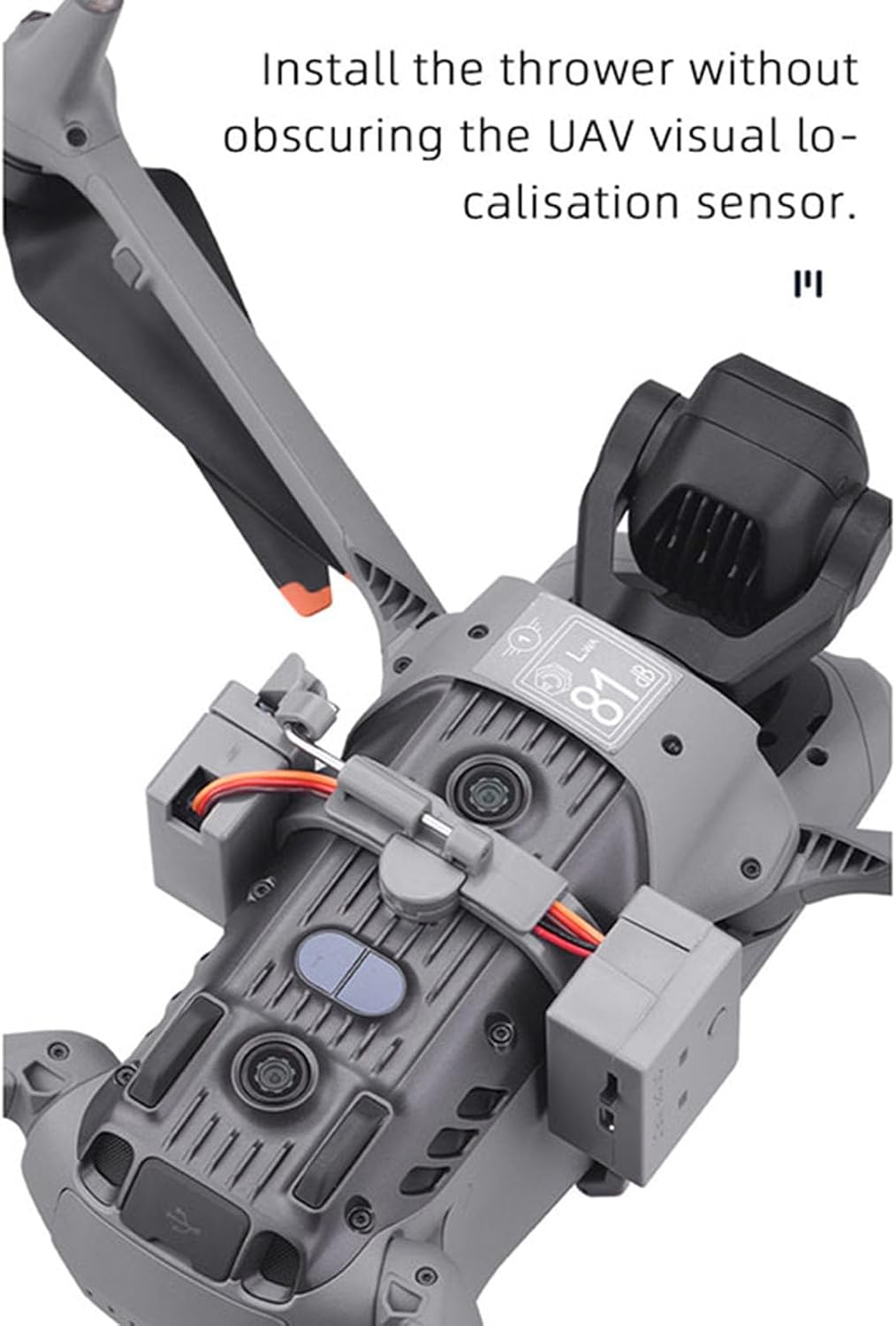 Specification:Material: ABSColor: Dark GreyAirdrop System Size: 8.8x9.6x2.7cmFront Landing Gear Size: 6.8x2.3x1.8cmRear Landing Gear Size: 5x4.5x3cm Maximum Load Weight: 500gBuilt-in Battery Capacity: 150mAhCharging Interface: Micro-USBStandby Time: about 12 hoursCharge Once can Open: about 300 timesSelf-charging Time: 1.5 hoursApplicable Models: for DJI Air 3Package includes:1x Airdrop System1x Landing Gear Set1x USB Charging Cable1x Hanging Wire HookNote:Does not include the dronesThe "red light is always on" during charging, the "green light is always on" when fully charged, the parabola will flash a few red lights when it is opened for normal use, and then the "red light is always on"
