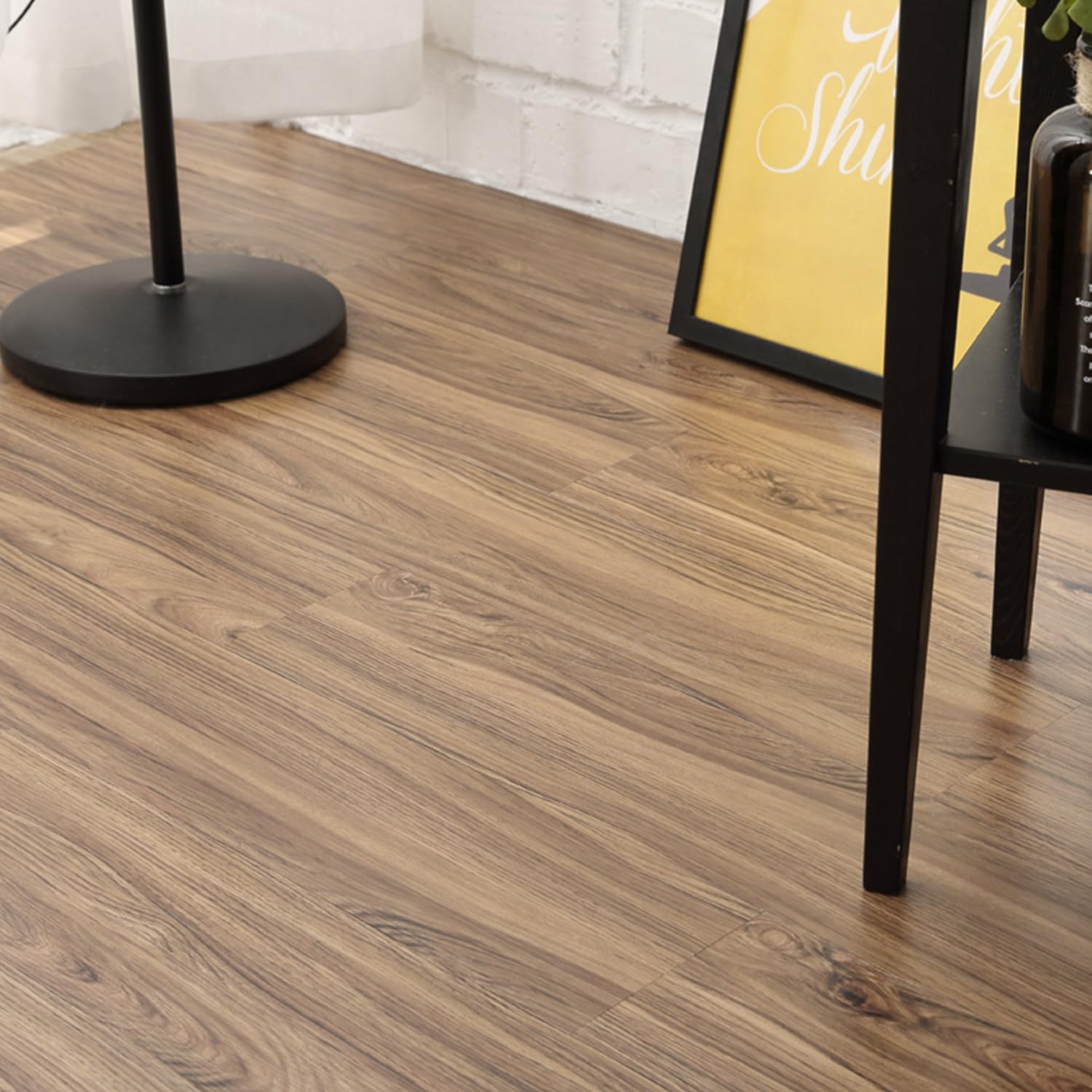 | Material | JUGATAMAIBU Peel and Stick Floor Tile Natural Wood Grain Appearance Self Adhesive Waterproof Fire Prevention and Scratch Prevention Suitable for Kitchen Bedroom Living Room and Office. |
