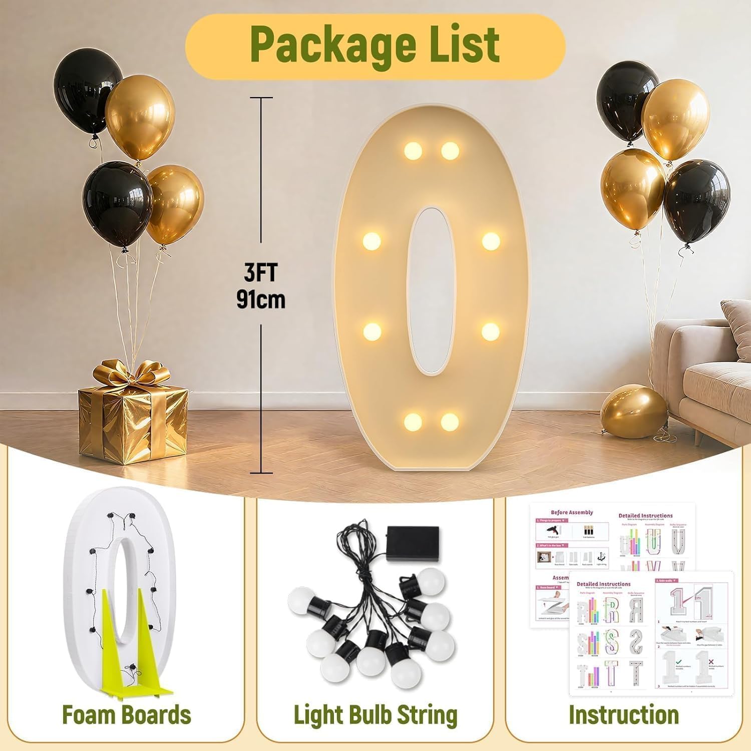 Marquee Numbers Large Birthday Decorations, 3FT Light Up Number Party Decor for Girl and Boy Birthday Decoration Quinceanera Backdrop Anniversary Cardboard Big Balloon FrameSpecification:Material: foam boardMosaic Frame Color: whiteQuantity: 2Size: 3FT / 91cmPackage includes:2 * Marquee Light Up Numbers 2 * String Bulb2 * Instruction