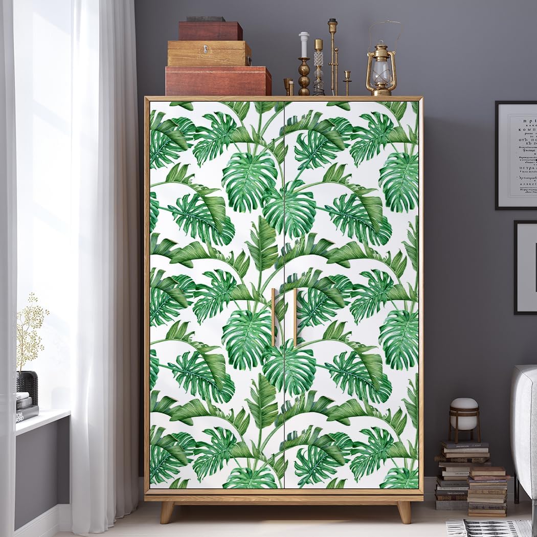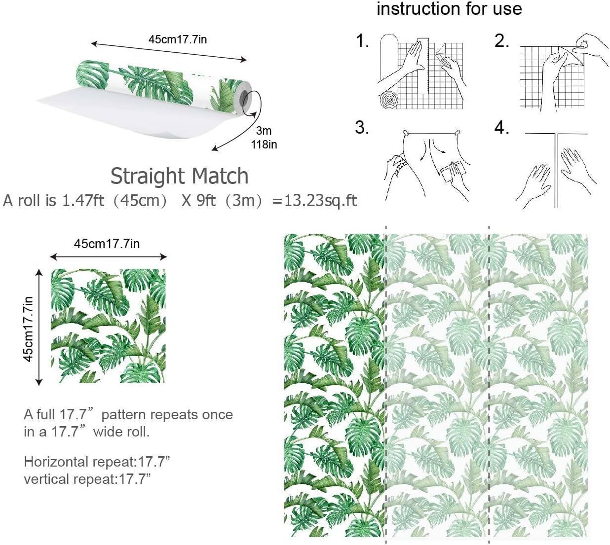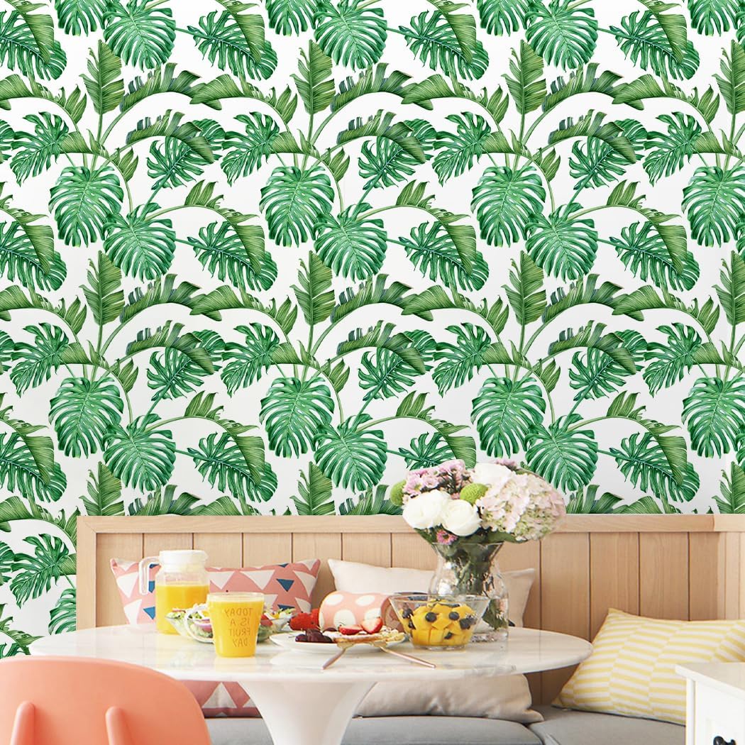 Danmyho Tropical Leaves Peel and Stick Wallpaper Palm Leaf Removable Wallpaper Jungle Self Adhesive Contact Paper Removable Green Leaf Wall Paper for Living Room Bedroom 17.7"x118"