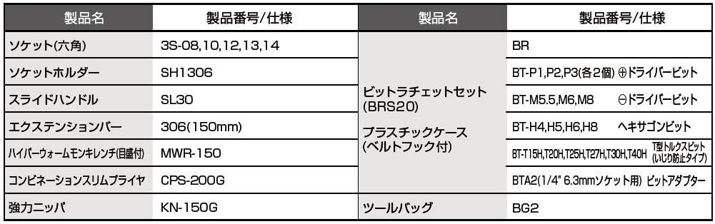A standard tool set that is perfect for car and motorcycle maintenance, carefully selected from classic tools. Popular bit ratchet set. The basic tools are included in a compact bag, so it can be used as a car tool.