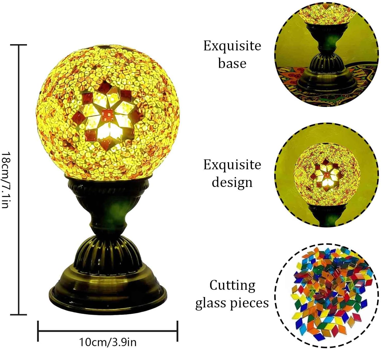 Light Up Your Magic Moments with Our Exotic Moroccan Moon Globe Night Light Step into a world of warm, enchanting glow that transforms any space into a cozy sanctuary. More than just a lamp, this Exotic Moroccan Globe Light is a piece of art, an ambient creator, and your personal companion for tranquility and style. Bedside Companion: The perfect gentle night light for your bedside table. Its soft, eye-friendly glow guides your way at night without disrupting sleep, and is ideal for late-night reading. Nursery & Kids' Room: A comforting "guardian" for your little ones, dispelling fears of the dark. For new parents, it's the perfect soft light for nighttime feedings and checks. Living Room & Study: Place it on a shelf, console table, or reading nook to instantly add an exotic and cozy vibe to your living room or create a serene atmosphere for meditation and music listening. PACKAGE INCLUDE: Morocco round ball night light x1 150cm power cord plug x1 Technical Specifications: Size: 3.9in*7.1in(10cm*18cm) Material: LED+glass+Iron base Install:can put on the table shelf ATTENTION:Designed mainly for decorative purpose,Cannot be taken as a substitute of daily lighting.But it can be used as a night light!Store the light in a cool and dry place if product is not to be used for a long time.If you want to use it outdoors, please pay attention to waterproof.