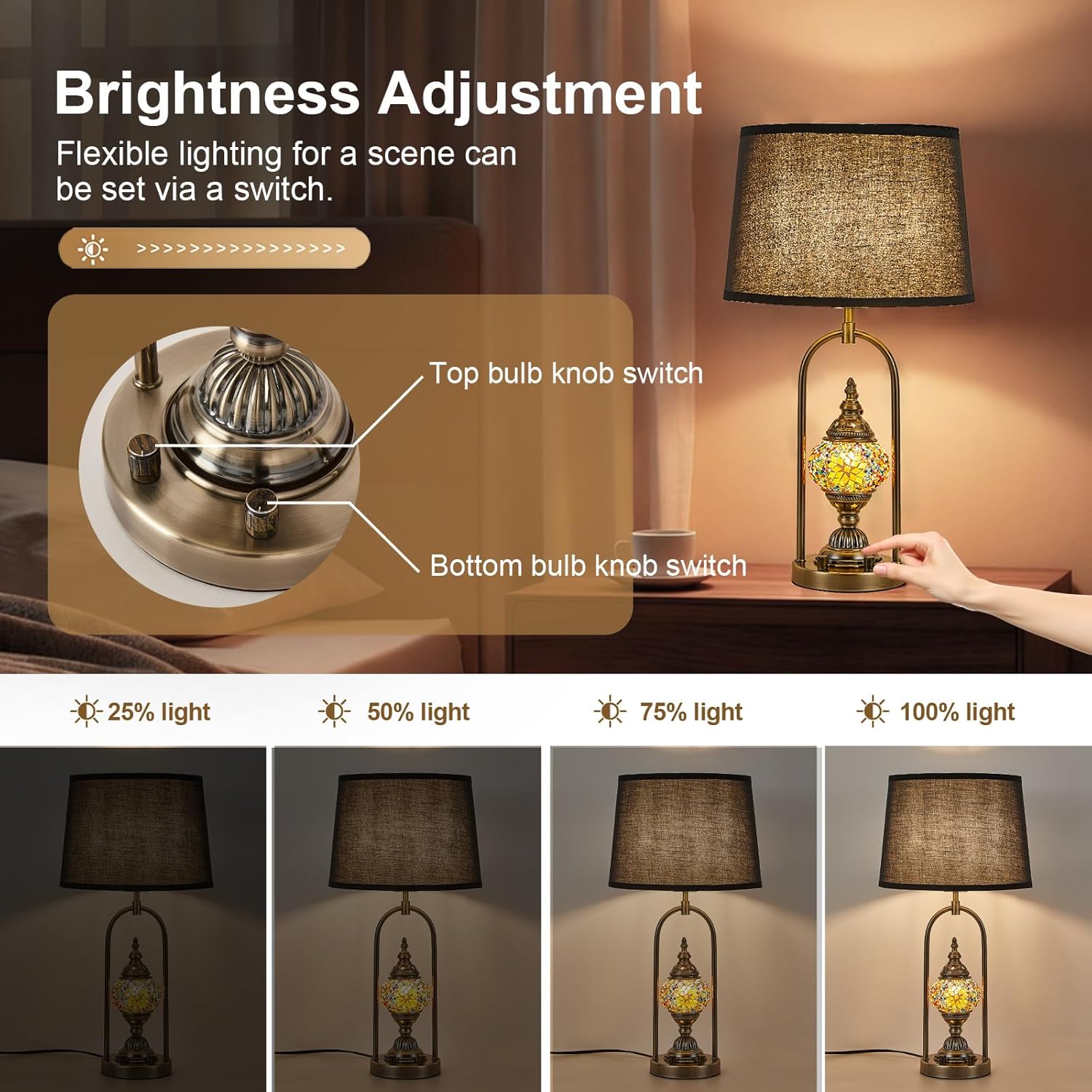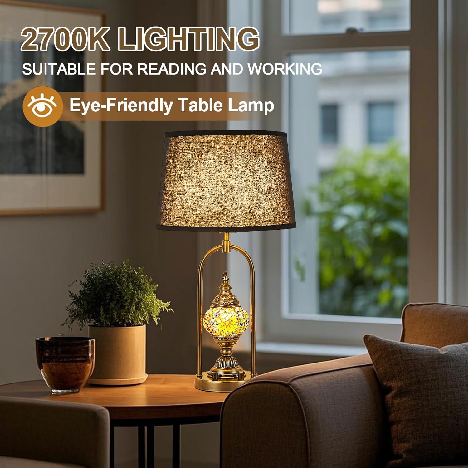 | Additional Features | Decorative Arch Frame, Dual Light Sources, Led Compatible, Linen Shade, Mosaic Glass Globe |