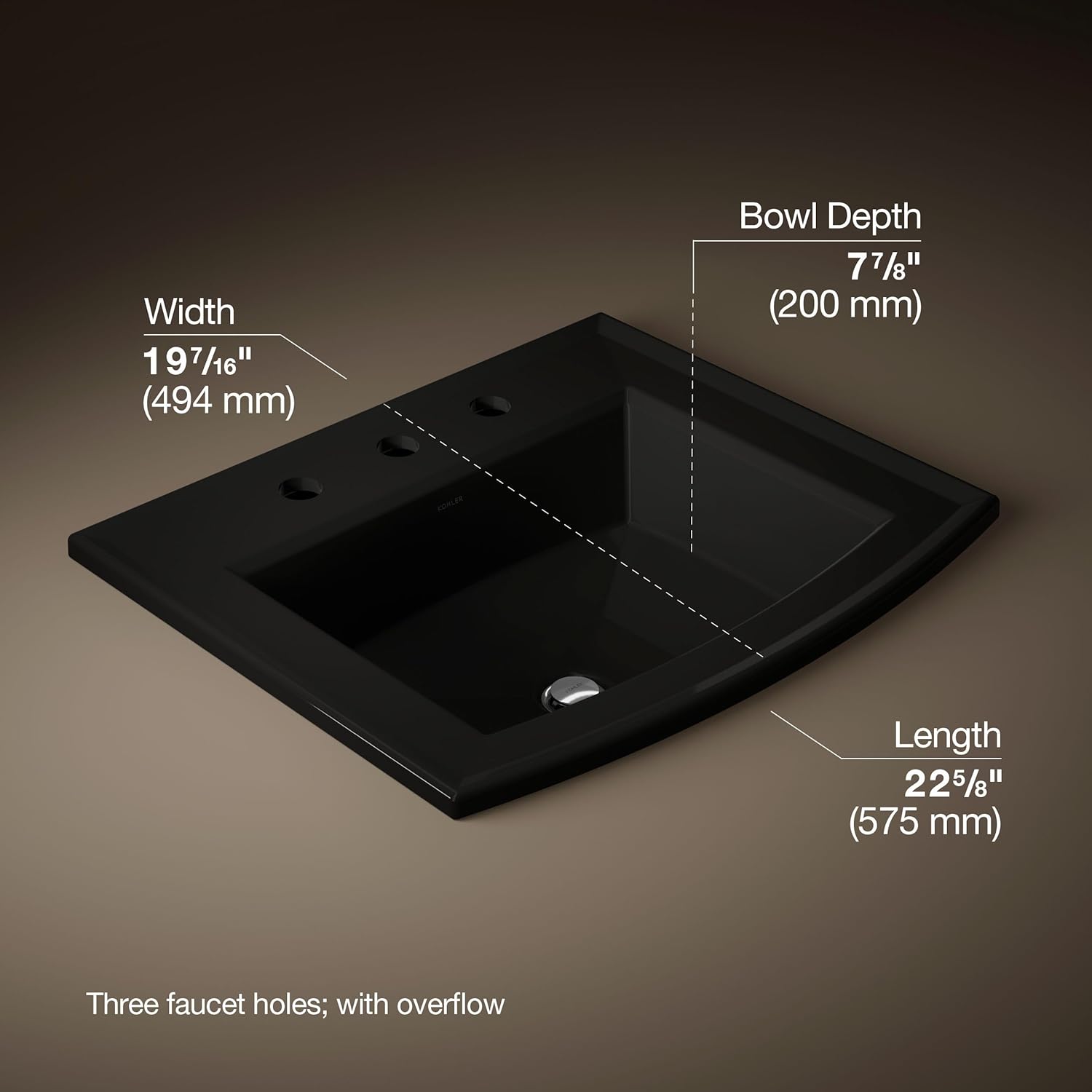 Product Description KOHLER Archer offers a timeless appeal, blending subtle elements of Craftsman woodworking techniques and the intricate facets of jewelry. Distinguished by its beveled edges and clean geometry, the Archer rectangular drop-in bathroom sink creates a universal look that suits an array of bathroom styles. From the Manufacturer The Archer self-rimming lavatory features the transitional aesthetic of the Archer Suite, blending subtle design elements found in craftsman furniture's chamfering techniques and the intricate facets of jewelry.