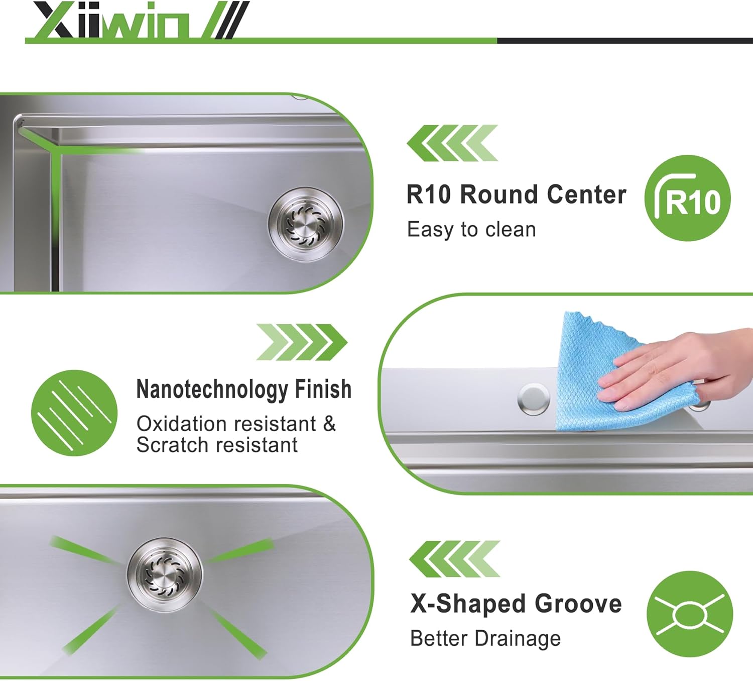 | Included Components | Bottom rinse grid and Drain Assembly, Redwood cutting board, Roll-up drying rack, Sink, Stainless steel colander |