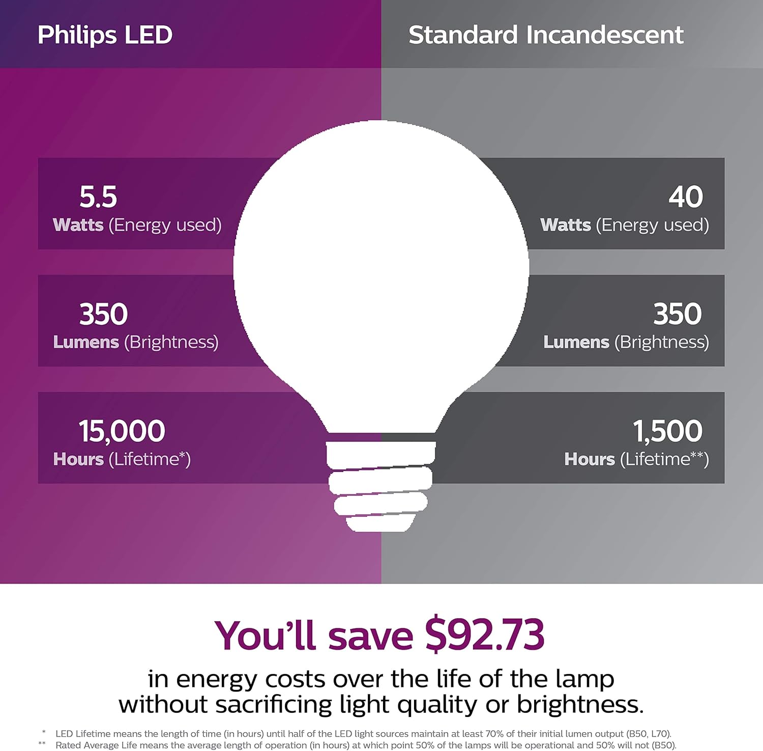 Philips LED Non-Dimmable G25 Light Bulbs offer warm and comfortable lighting with high CRI (color rendering index). At 5000 Kelvin the bulbs deliver bright, crisp color ideal for project and task lighting and to brighten larger spaces.