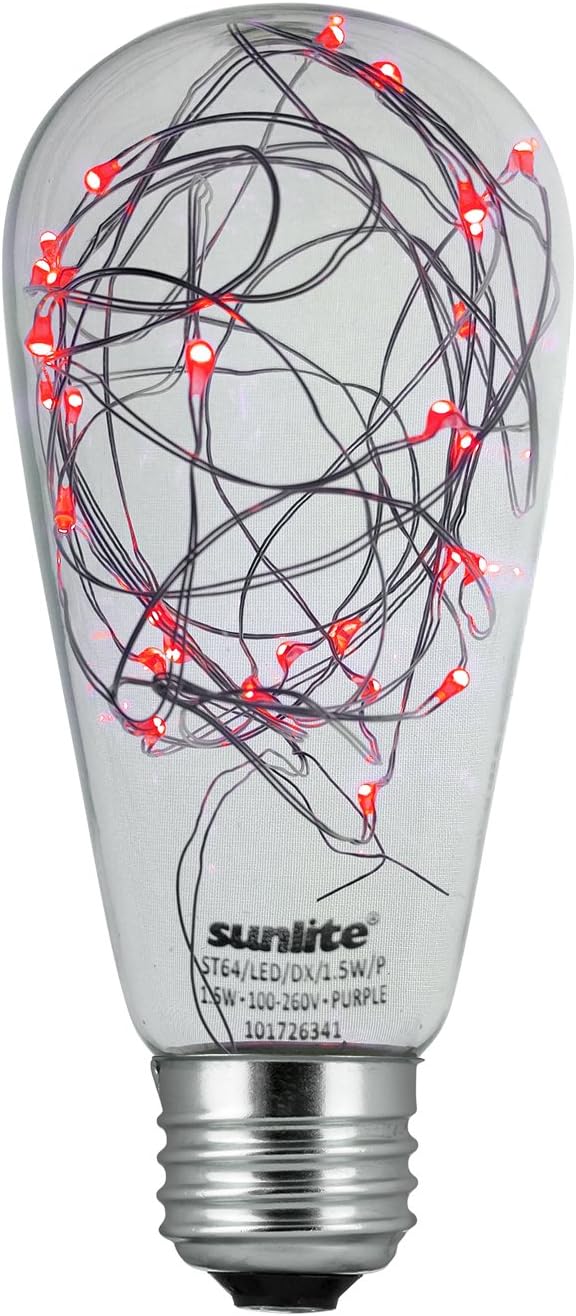 Sunlite LED ST64 vintage style decorative bulb is a true work of art and will bring a creative touch to your decor. The tiny leds run along a thin cord and produce a glowing romantic effect. It is ideal for pendants, sconces and string lights for holiday lighting, garden parties and bars. The bulb emits a charming blue color. This long lasting bulb will run for 20,000 hours and will last over 18 years based on a 3 hour per day use. The energy saving leds draw only 1.5 watts and has an energy cost of only $0.18 per year. Its standard medium (E26) base bulb will fit into most fixtures.