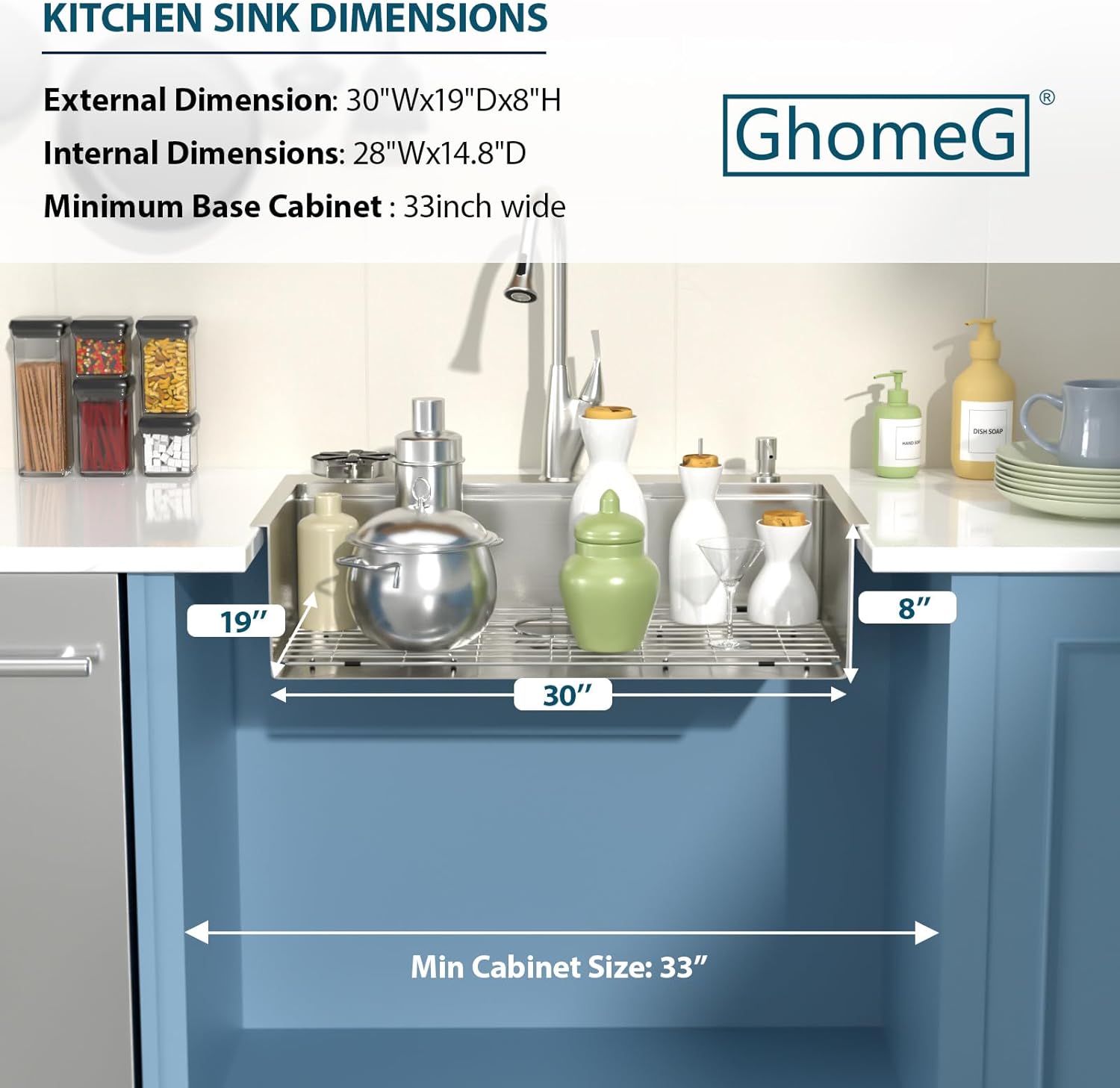 | Included Components | bottom rinse grid,roll up rack, cutting board,colander,glass rinser, drain strainer, drop in kitchen sink single bowl, soap dispenser |