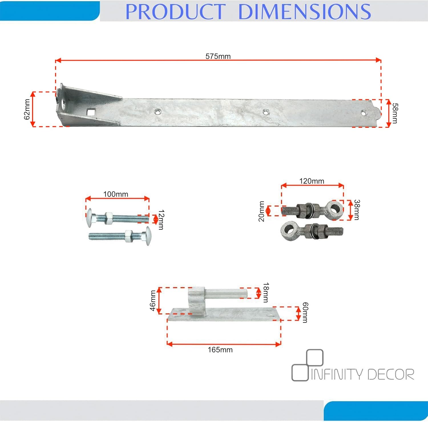 Galvanised Adjustable Hook & Band Hinges for Field or Garden Gates Hardware 12"/18"/24" SUPPLIED IN PAIRS SUPPLIED WITH ALL THE FIXINGS