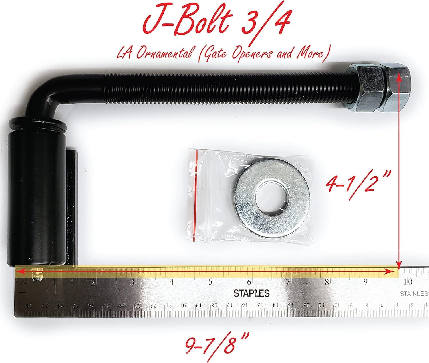 Upgrade your gate installation with these 3/4" J-Bolt adjustable gate hinges, engineered for strength and smooth gate movement. Each hinge is constructed from heavy-duty steel with a black powder-coated finish and is ideal for both commercial and residential applications. Designed to handle up to 900 lbs per pair, these hinges are perfect for wrought iron, steel, or ornamental gates.Key Features:🛠 Adjustable 3/4" J-Bolt Design for custom gate alignment⚙ Ball bearing design ensures smooth swing motion🏋 Load Rating: Supports up to 900 lbs per pair🔧 Weld-on tabs for secure and permanent installation🎨 Black primer-coated finish for added durability and rust resistance📦 Sold in pairs – Includes 2 hinges, washers, and nutsUpdated Dimensions (per hinge):Threaded Length: 8-3/4"Total Length: 9-7/8"Hinge Pin Length: 3-7/8"Hinge Pin Diameter: 1-1/2"J-Bolt Diameter: 3/4"Included in the Package:2 × 3/4" J-Bolt Adjustable Gate Hinges2 × Heavy-Duty Washers4 × Locking NutsApplications:Driveway GatesSwing GatesFarm FencingCommercial Gate SystemsOrnamental Steel and Iron Gates