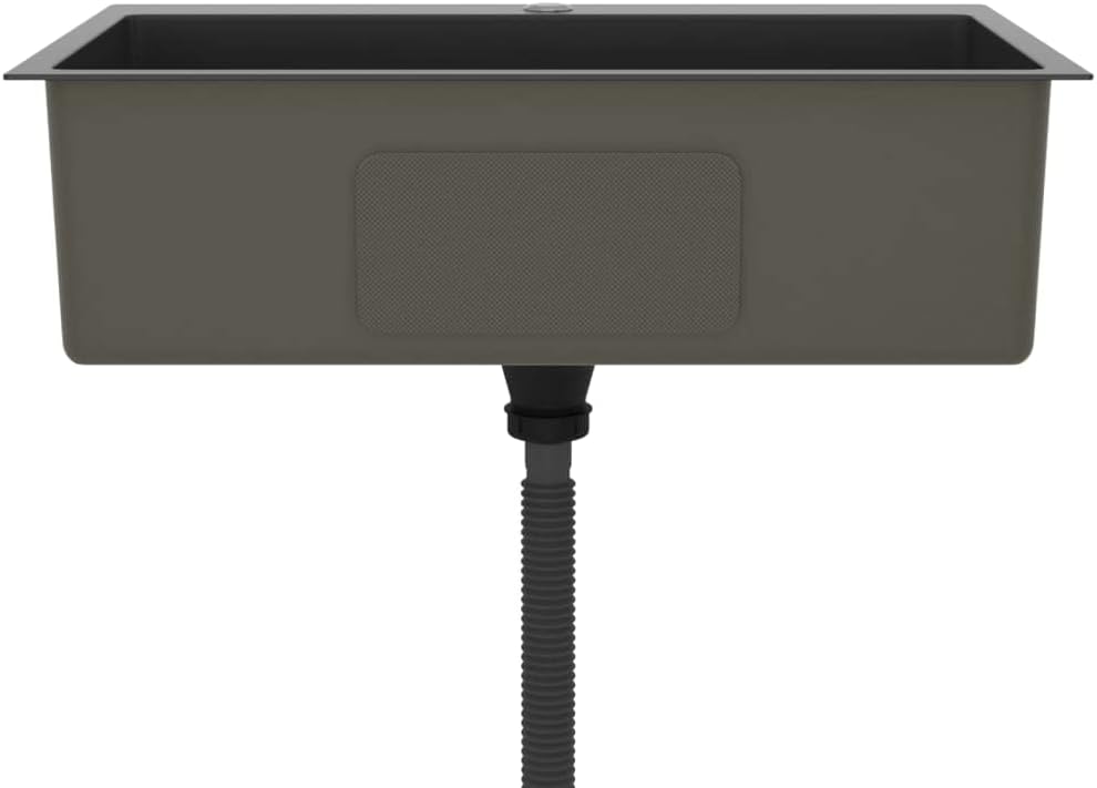 Enjoy the advantage of this kitchen sink with clean contemporary designs. The bowl in silky smooth satin finish will ooze class and sophistication, which will fit any kitchen decor!Combing the best in function and design, this sink is crafted of high-graded handmade stainless steel in anti-condensation paint, lead free and corrosion resistant. It is sound proofing with the sound-reduction pads. Additionally, the bowl with a unique X-flume design facilitates quick flow, preventing standing water in the bottom of the basin. The faucet hole with a decoration cover is also designed for easy installation.The sink can be fitted as undermount, flush mount and drop in and you can have it in any way you prefer.Color: BlackMaterial: Stainless steel with brushed finishOverall dimensions: 27.6" x 17.3" x 7.9" (L x W x D)Top thickness: 0.1"Faucet hole diameter: 1.4"Food gradeWith faucet hole with a decorative coverIncludes sound-reduction padsLead free and corrosion proofQuick flows with the X-flume designInstallation types: undermount, flush mount and drop in