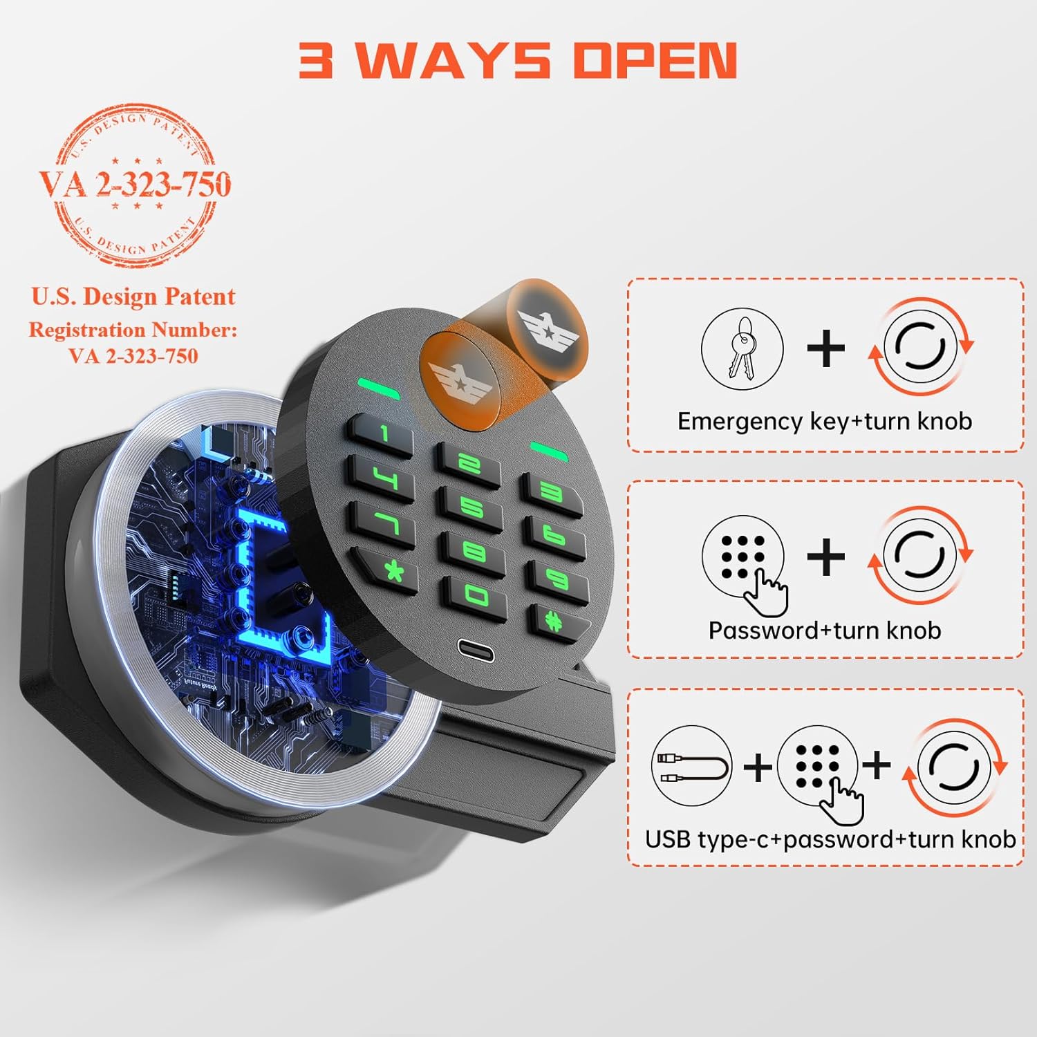 | Additional Features | Adjustable & Removable Shelf, Alarm System, Anti-Theft, Combination Lock, Sensor Light |