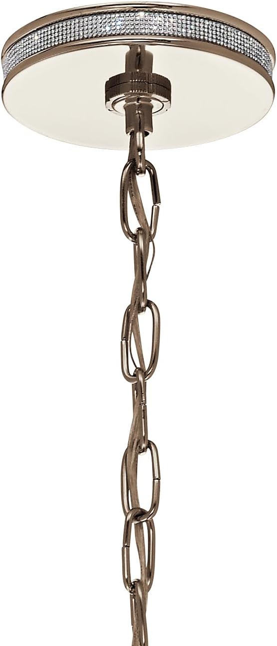 Angelica 5-Light pendant features a polished nickel finish and clear glass shade. Pair it with vintage style starter bulbs for a classic look. A sparkling cut crystal "necklace" gives the Angelica collection its signature look - helping bring sophistication and attention-getting style to hallways, baths, kitchens and more.