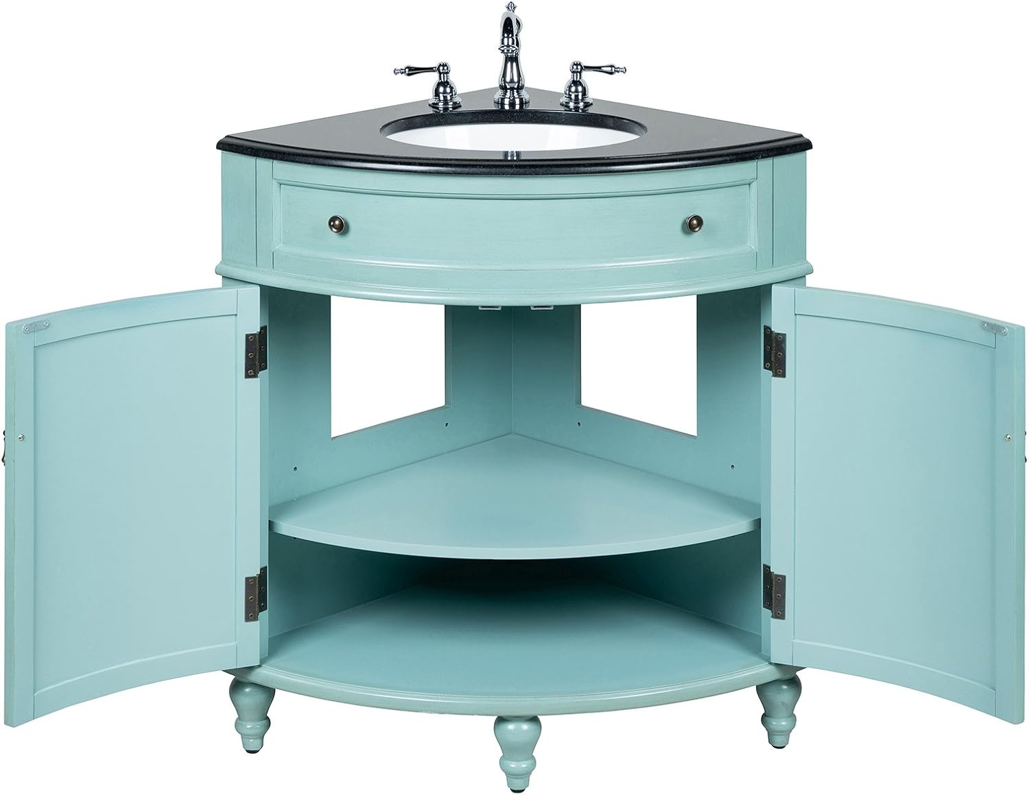 Dimensions: 24 x 24 x 34.5"H. approx.Featuring a white marble top and sturdy body, this Triadsville sink vanity is the ideal choice for those who seek a functional and polished model. Its non-intrusive and sleek body provides a surprisingly large amount of storage space.Get started on your bathroom by purchasing the Triadsville Single Vanity today.Fully assembled by the manufacturer, with countertop & sinks pre-installedCountertop: Black Granite (One Piece Genuine)White porcelain under mounted sink8-inch widespread faucet hole pre-drilledMaterials: Solid Wood Structure & CARB Ph2 Certified PanelsCabinet Style: Cottage, vintage light blueProduct Disclaimer: The digital images on our website are as accurate as possible. However, different monitors may cause colors to vary slightly. Due to the nature of natural stones, it's normal for stone countertops and sinks to have variation in color and texture, discolored spots, pores, veins or other birthmarks and imperfections. Therefore, these are NOT considered defective. To avoid any dirt or stain from getting into the stone, we highly recommend you to seal any stone surfaces before installation