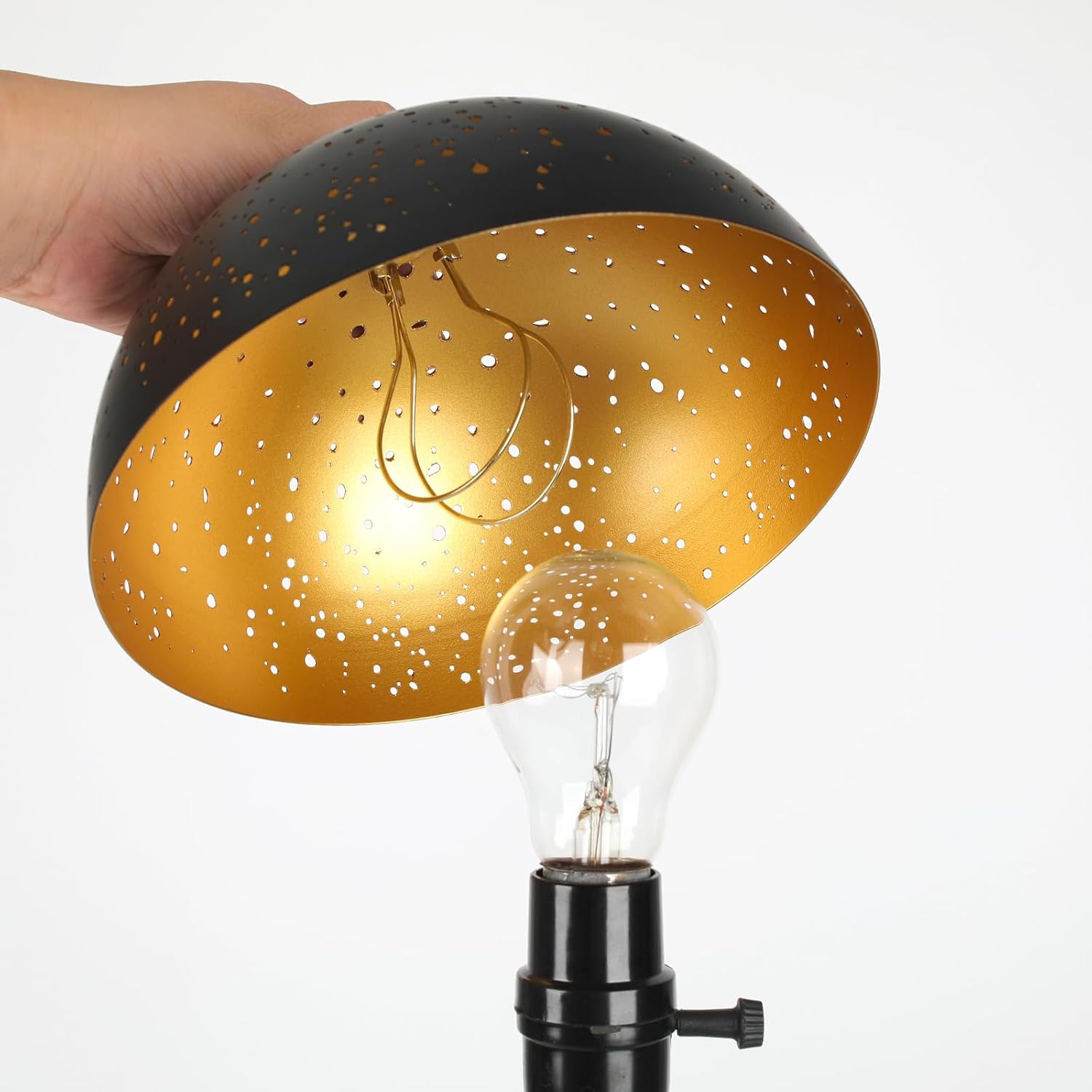 ALUCSET offers a 2-pack dome shaped clip-on lamp shade that will enhance any space. Shade Dimensions: 1/4 inch fitter and measures 4 inches height, 8 inches diameter The shade is made with a clip-on styled fitter that is most compatible with pear shaped light bulbs but can also be used with other bulbs that are similar in size. We recommend that any light bulbs that is used with this product be a type A standard sized light bulbs. Crafted with precision and attention to detail, our lamp shades are made with high-quality metal materials that are built to last. They are made to withstand daily use while still maintaining their shape and beauty. This product is suitable for a wide range of lighting options including small table lamps, accent lamps, candle stick lamps, chandeliers, and wall sconces, and bedroom night light lamps.