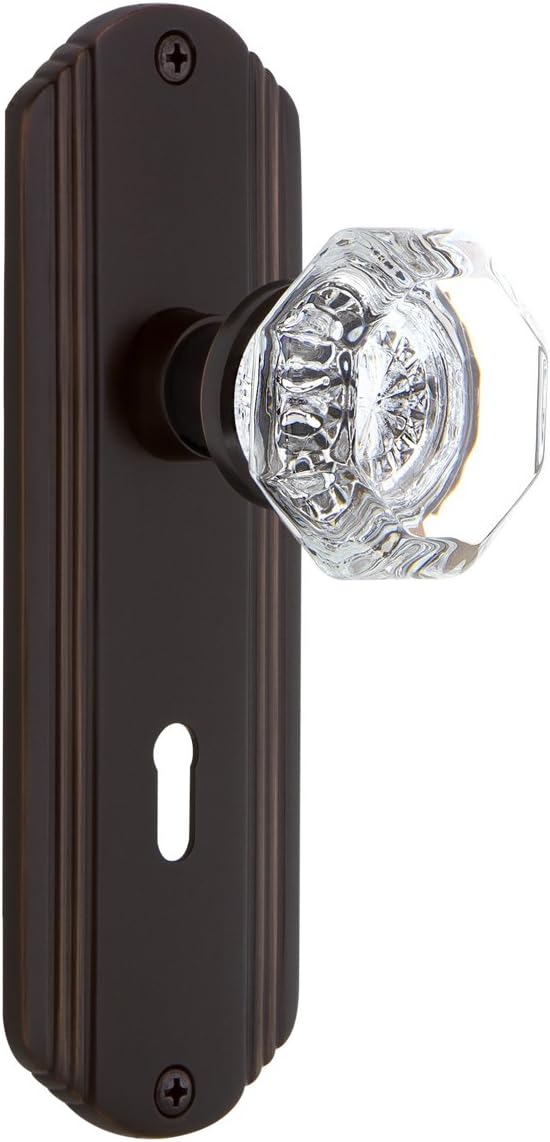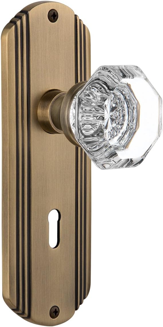 The Deco plate brings to mind old hollywood, jazz, and the great gatsby, all of which inspire a modern twist on great classics from the past. Pair this with our waldorf door knob, and its crisp clean edges, for a lucent look. All Nostalgic Warehouse door knobs are mounted on a solid (not plated) forged brass base for durability and beauty.