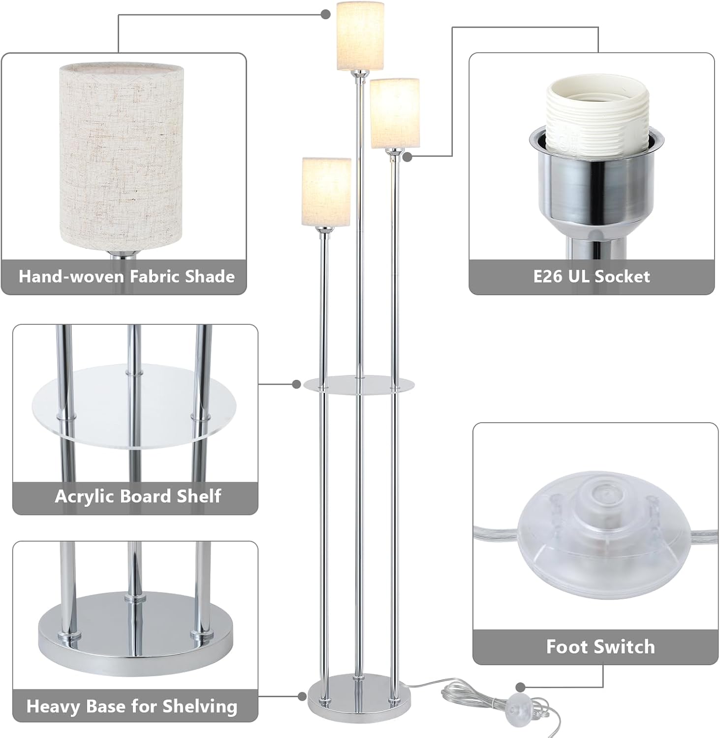 | Item Type Name | Chrome Floor Lamp with Shelves |