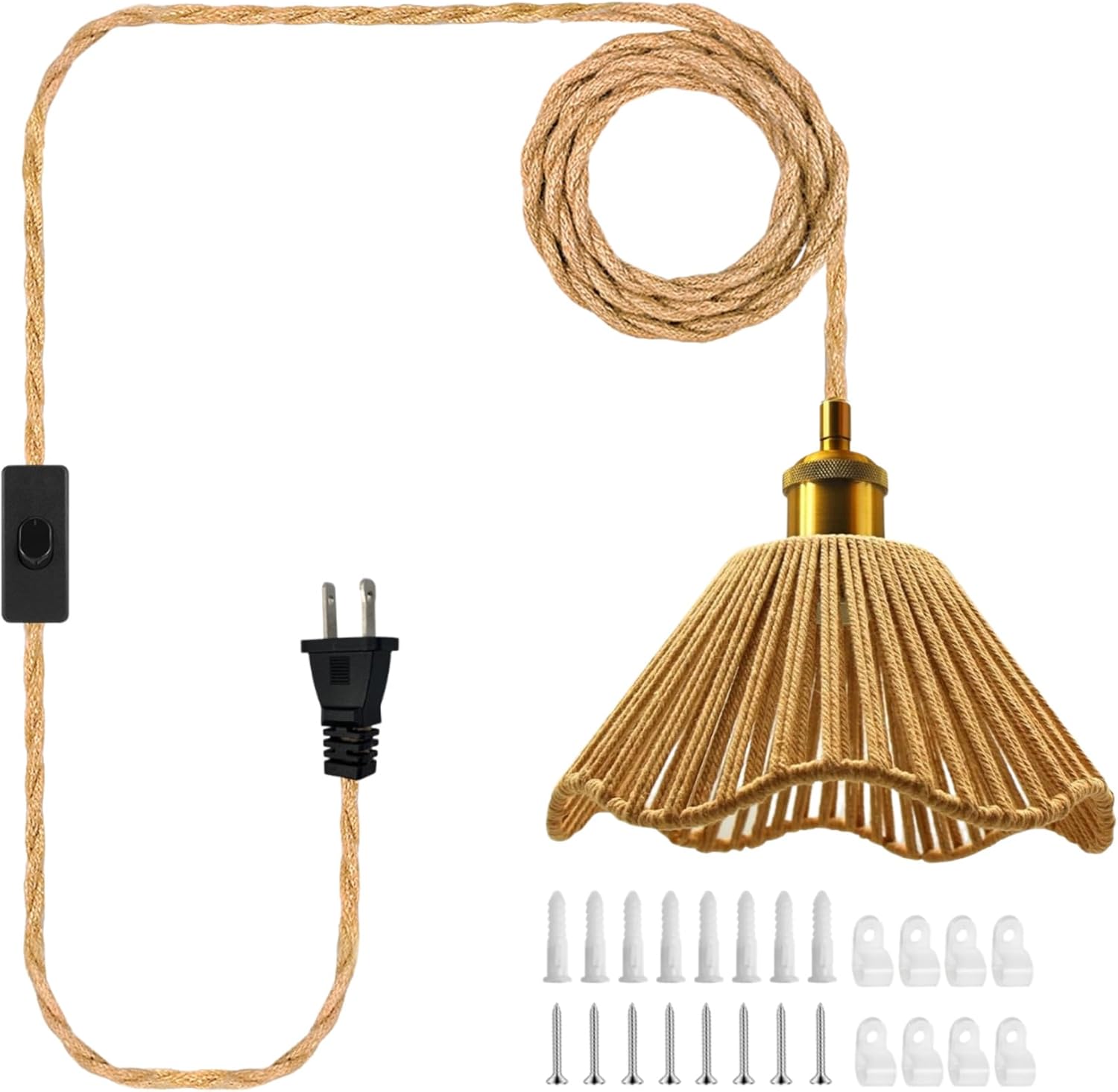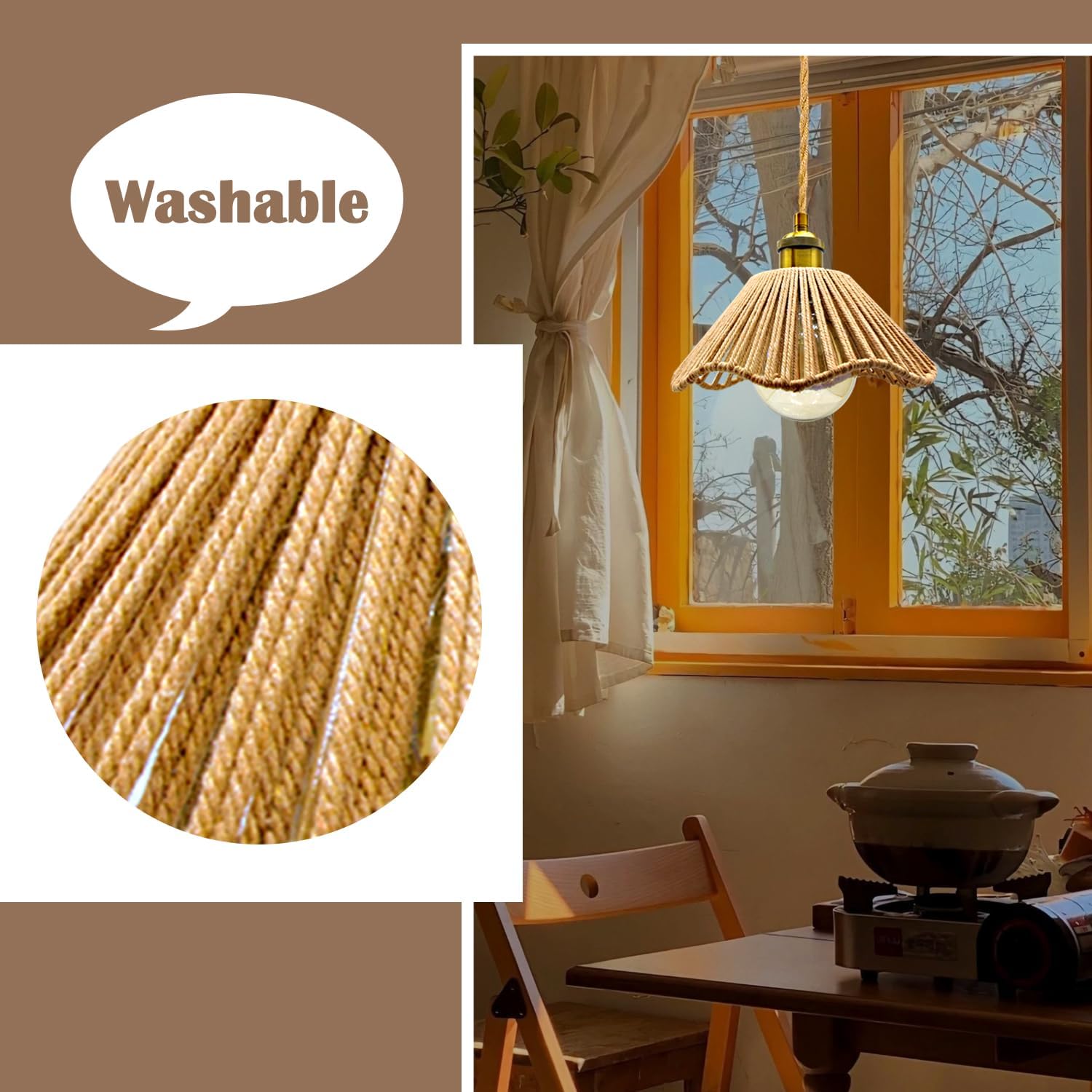 Hand-woven hemp rope chandelierProduct: Hemp rope chandelierMaterial: hemp rope, metalColor: Hemp Rope + BrassPower: 100 watts maxVoltage: 110-220VLamp head E26/E27Metal Hemp Rope Pendant Light Features: 1. brass E26 E27 lamp head, exquisite and beautiful, long service life2. Removable lampshade ring, support replacement lampshade.3. 510cm cable, no limitation on the use of the site, more practical4. Comes with installation kit, no need to buy separatelyUse scene: bedroom, study, living room, kitchen, living room, countryside, farmhouse, corridor, balcony, camping, party, etc.(Bulb is not included, please buy separately).