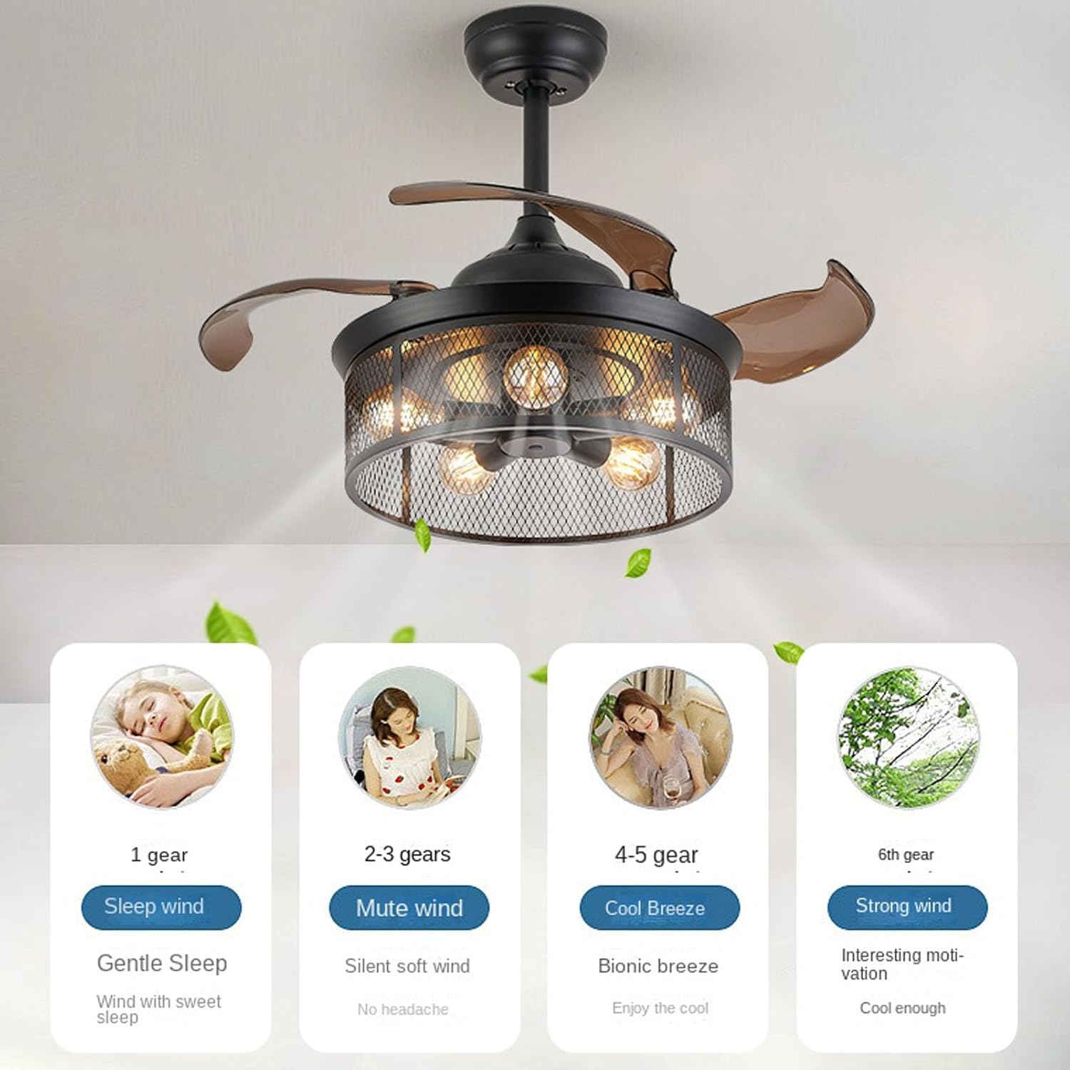 How to Use: Insert the bulb, install it on the top, and connect the power supply to work. Specification: Item Type: Cage Ceiling Fan Overall Maximum Diameter: Approx. 107mm / 4.2in (the size of the fan blade opening when working) Remote Control Battery: 2 x AAA Battery (not included) Working Voltage: 95-265V Applicable Light Bulb: 5 x E26 (not included) Single Maximum Bearing Capacity: 40W (Maximum) Fan Speed: 1 gear for sleep wind speed, 2-3 gear for silent wind speed, 4-5 gear for cool wind speed, 6 gear for strong wind speed Timing Function: 1H, 2H, 4H Installation Height Aboves Ground: > 2.3 meter / 7.5ft Material: Iron Weight: Approx. 9050g / 319.2oz Package List: 1 x Fan Host 1 x Iron Cage 1 x Lamp Holder (5 Heads) 1 x Remote Control 1 x Remote Control Rack 1 x Iron Cover 1 x Hanging Bracket 1 x Tube 1 x Short Tube 2 x Point Screws 3 x Flat Screws 2 x Flat Middle Screw 4 x Flat Short Screws 2 x Yellow Expansion Tube 2 x Red 1 x Patch 2 x Point Short Screws 2 x Expansion Pipes Note: It is recommended to use 12W LED bulbs with a maximum load of 40W. Choice of warm white or cold white lighting, as well as energy efficient bulbs.