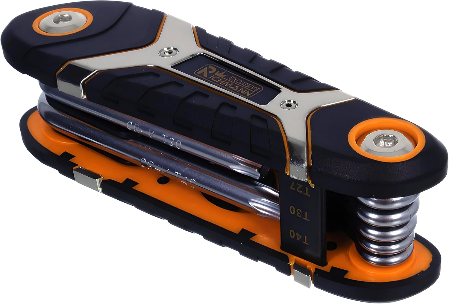 The search for a reliable and compact Torx Allen key set ends here. With the RICHMANN folding holder Torx key set, you are well equipped for any task. This 8-piece set offers a wide range of sizes from T9 to T40, making it an essential tool for professionals and DIY enthusiasts alike. Whether you are making fine adjustments or performing major repairs, these keys provide the precision and strength you need. Thanks to the foldable folding holder design, this set is not only compact and easy to store, but also ideal for mobile use. Made from durable Cr-V steel, this set guarantees years of reliable use, even in the toughest conditions. The RICHMANN folding holder Torx key set is the perfect addition to your tool box and ensures that you always have the right tool at hand when you need it most. Order now and experience the difference of a high-quality tool set