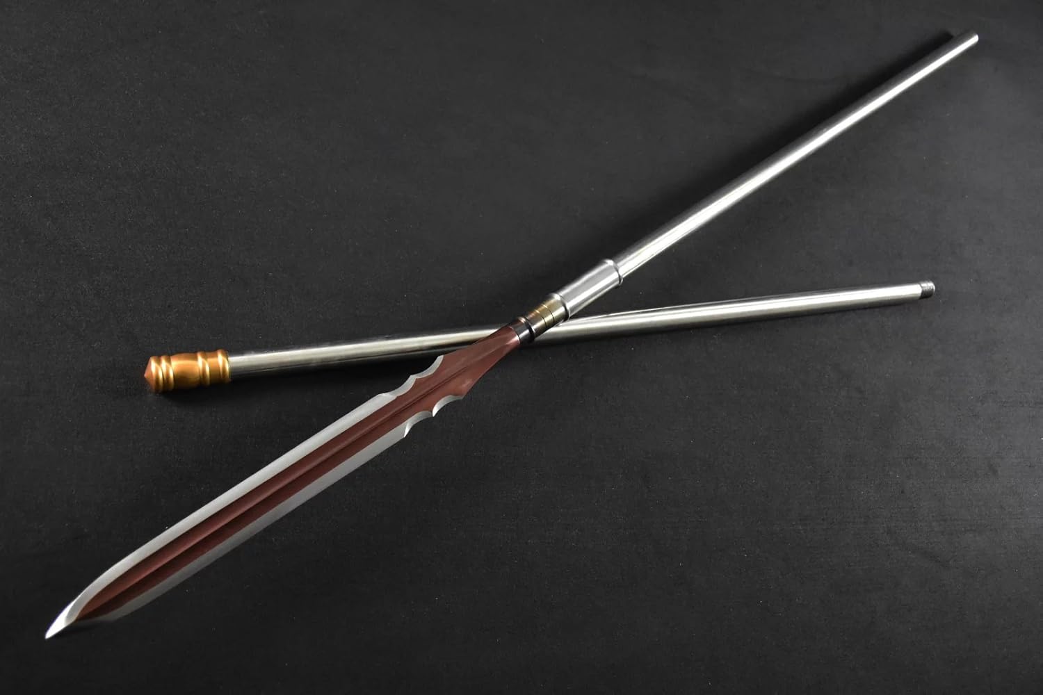Item Specification: Spearhead Material:High manganese steel; Overall Length: 78 inch/199cm; Spearhead Length:22 inch/56 cm; Blade length:16 inch/42 cm; Fitting Material:Alloy; Weight (with Scabbard):7.7 lbs/3.5 kg(approximately) Rod:Stainless steel,Divided into two sections. Condition: brand new; Origin:China zhejiang longquan; Packing:Bag+foam box.no Wood stand. China Longquan is the original place of treasured swords and celadon (ware). It is famous home and abroad for the production of Longquan swords. On the base of 2600 years'traditional sword culture of Longquan, our company inherited and are developing the ancestral sword-forging craft, absorbed the merit of other colleagues, and choose best material to forge the swords by over 20 working procedures such as hammering, shoveling, filing, engraving, quenching, polishing, etc. It is famous for the distinguishing features "tenacious and sharp, couple hardness with softness, threatening shiny blade, exquisite patterns and fittings" Thanks for high expectations and support from our customers. We will never disappoint any sword-lover and our customers. Meanwhile, we strive to make every sword to be excellent with renewed efforts, making perfection more perfect, and meet all customers'satisfactions.