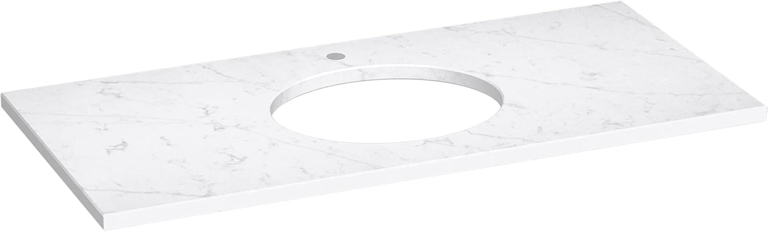 Silestone quartz bathroom countertops coordinate with standard-sized KOHLER vanities as well as a range of KOHLER bathroom sinks, allowing you to create a beautifully designed and customized look to match your personal style. Made of more than 90% quartz, this top provides exceptional durability and stain resistance, making it easy to maintain. Silestone quartz bathroom countertops are available in an array of neutral colors that evoke a natural, yet sophisticated, design element.