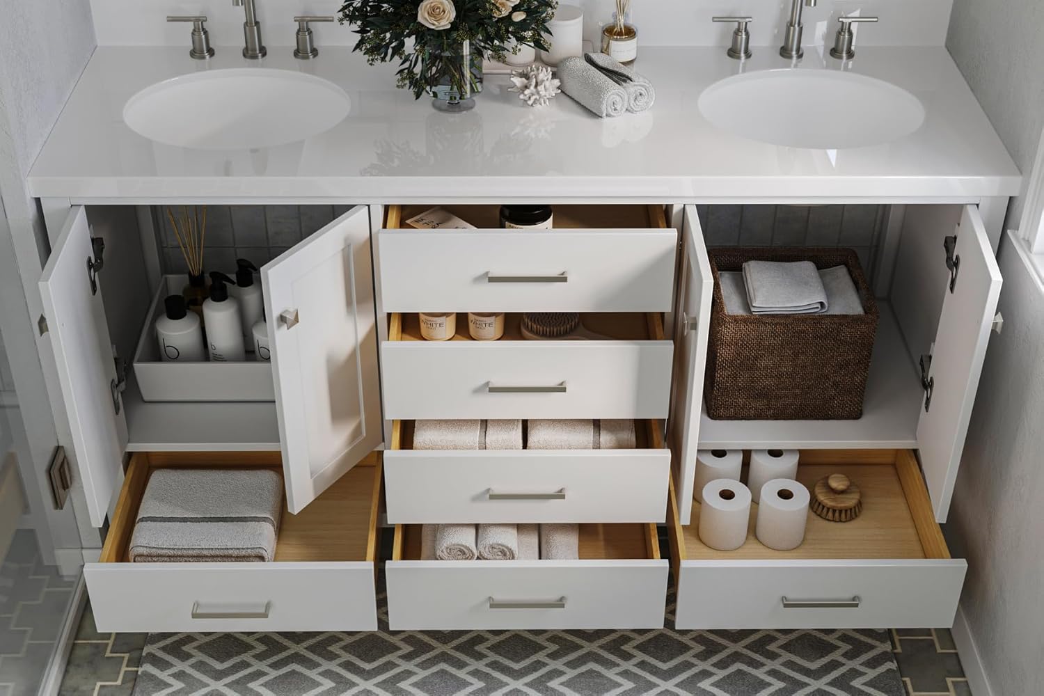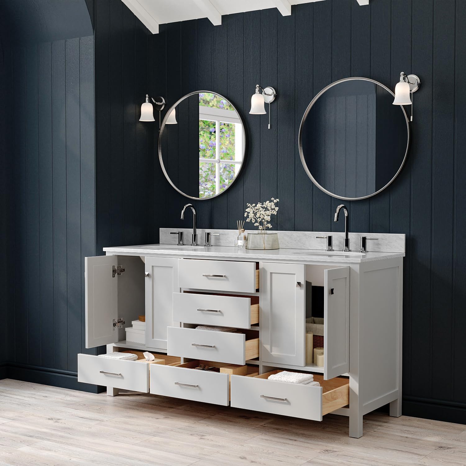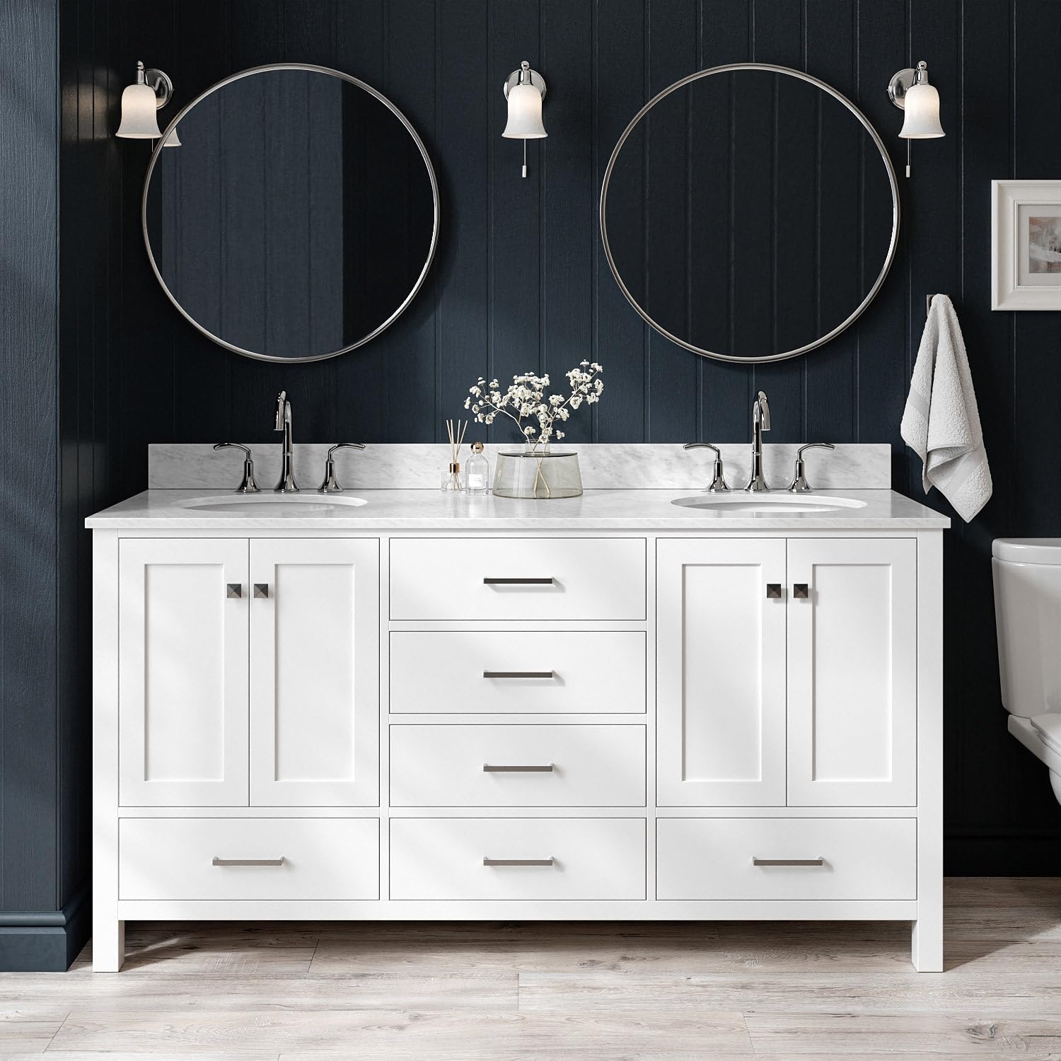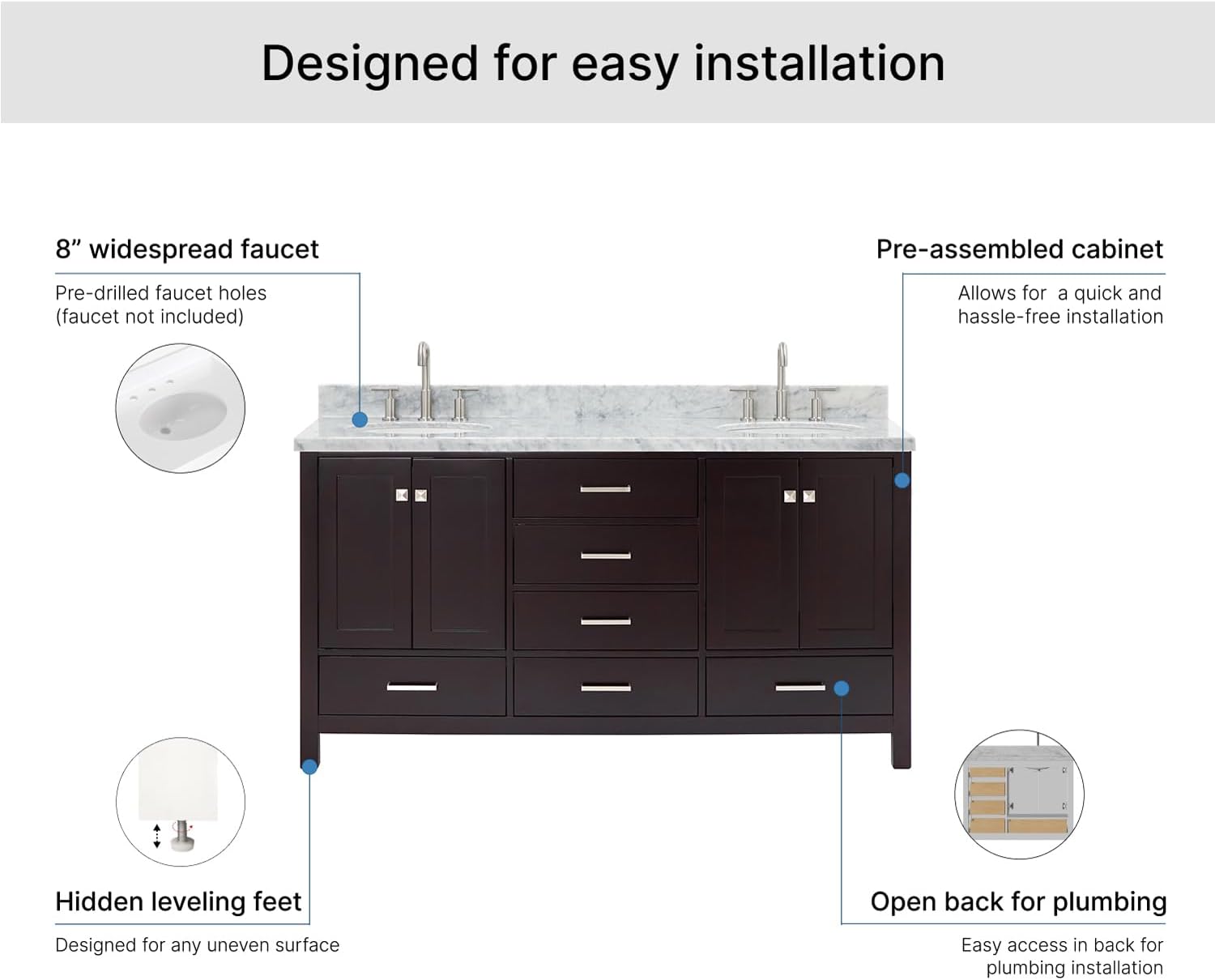 | Included Components | vvanity base cabinet, countertop, sinks, hardware, and backsplash |