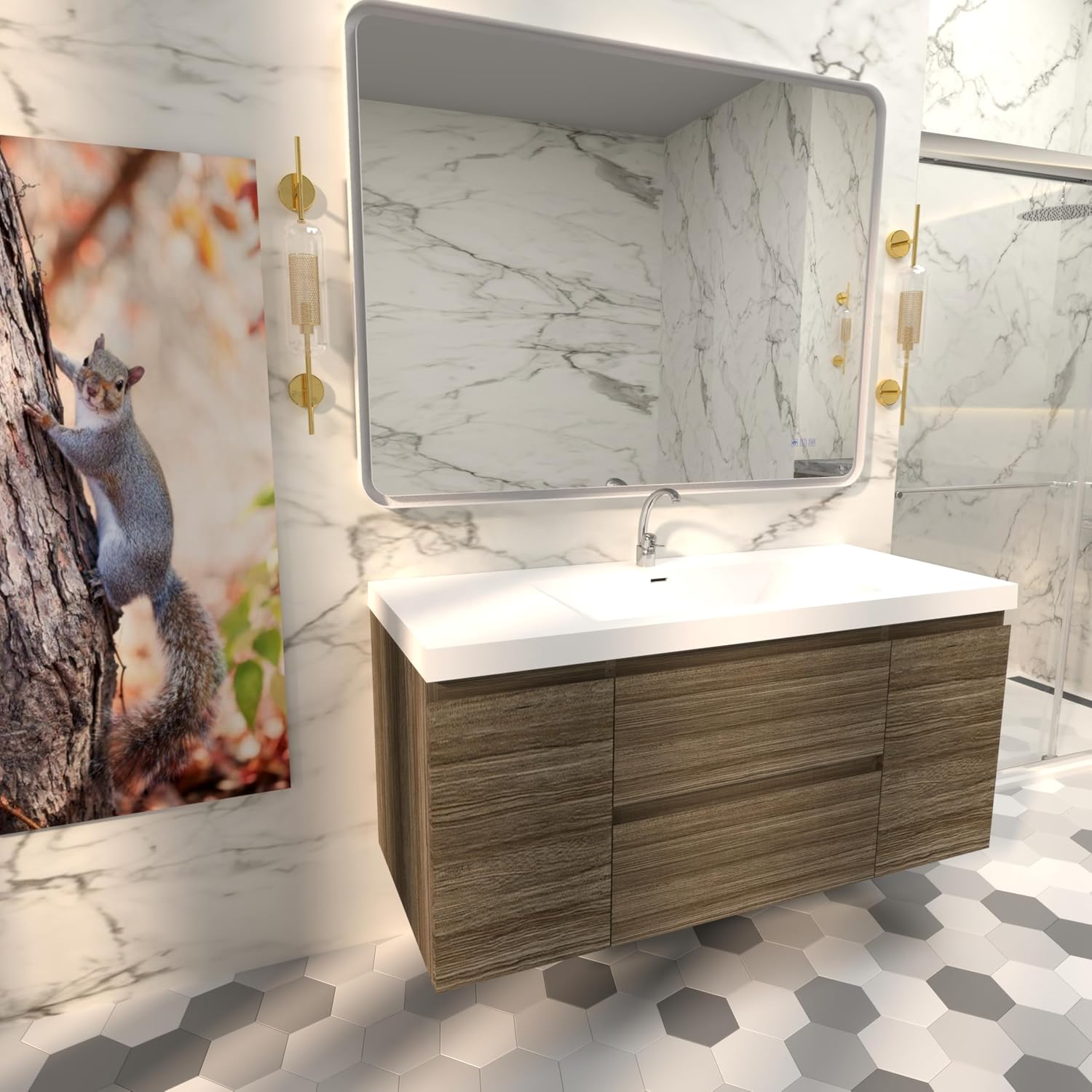 | Product Care Instructions | Cleaning the Resin Countertop: Use a soft cloth or sponge with mild soap and warm water. Avoid abrasive cleaners or scouring pads that can scratch the surface. For stubborn stains, use a non-abrasive household cleaner and gently rub the area. Maintaining the Particle Board: Wipe spills immediately with a dry cloth to prevent water damage. Clean with a damp cloth and mild detergent. Avoid soaking the surface. Use coasters or mats to protect the surface from hot or wet items. |