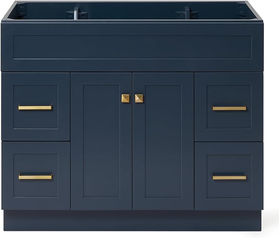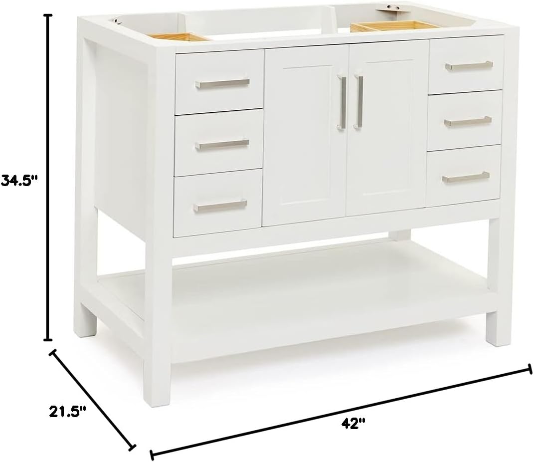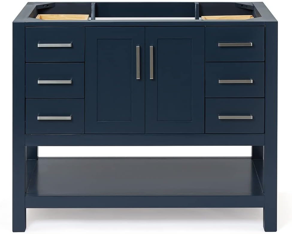 Elevate your bathroom with the DKB Isabella 42-inch bathroom vanity base cabinet—a perfect balance of traditional charm and modern flair. This 42-inch bathroom vanity with sink base is built from premium solid hardwood and plywood, ensuring a sturdy structure that resists daily wear. Finished in deep black Sherwin Williams PU paint, it offers both refined style and remarkable resilience. The tilt-down top drawer keeps essentials organized, while soft closing doors and dovetail solid wood drawers add a touch of luxury. Compatible with your choice of sink and countertop, this versatile 42-inch vanity with sink and countertop options is shipped fully assembled for effortless installation.