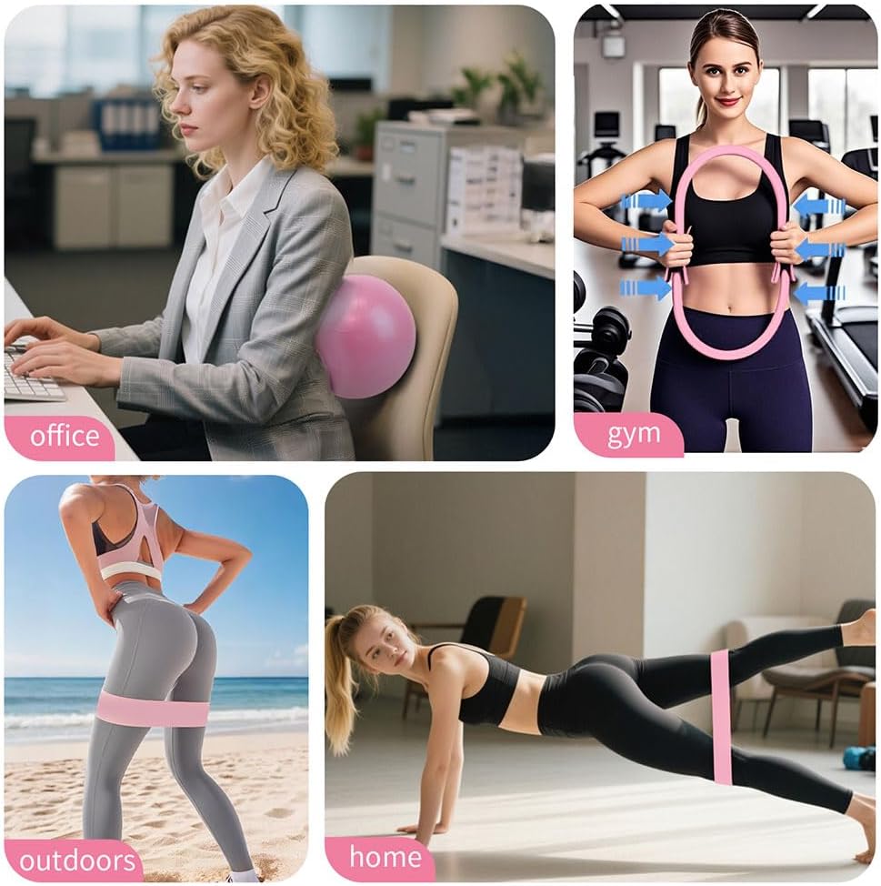 • 25cm Yoga Ball: Crafted from high-grade explosion-proof PVC, this yoga ball ensures safety with anti-burst construction. It enhances workouts as part of a pilates ball and ring set, suitable for pilates kit for home workouts. Versatile and durable, it's a staple in pilates equipment kits and pilates starter kits for beginners.