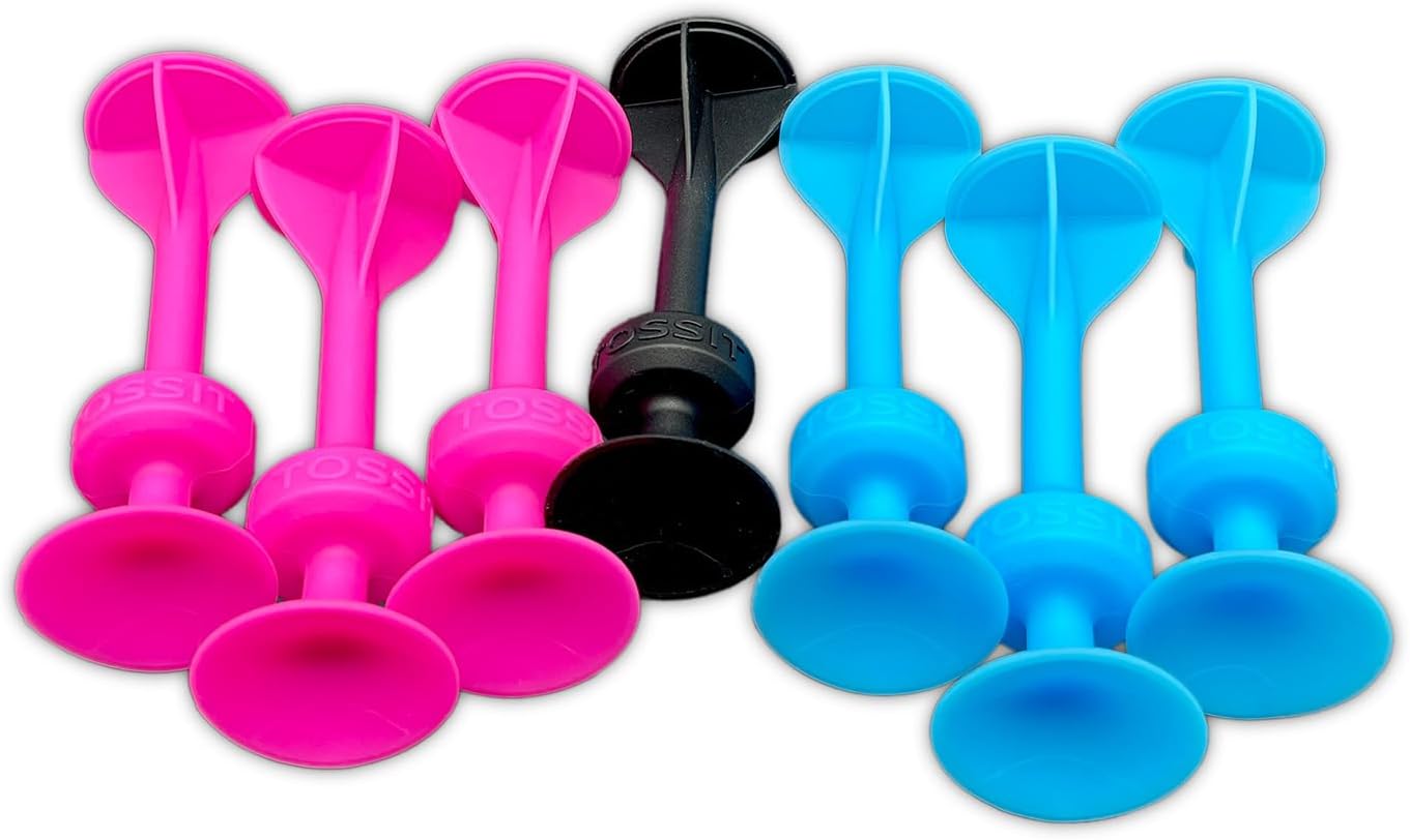 • The Tossits are 100% silicone soft darts with a powerful and durable suction cup to adhere to most smooth surfaces: tiles, windows, tables, parquet, cars, etc