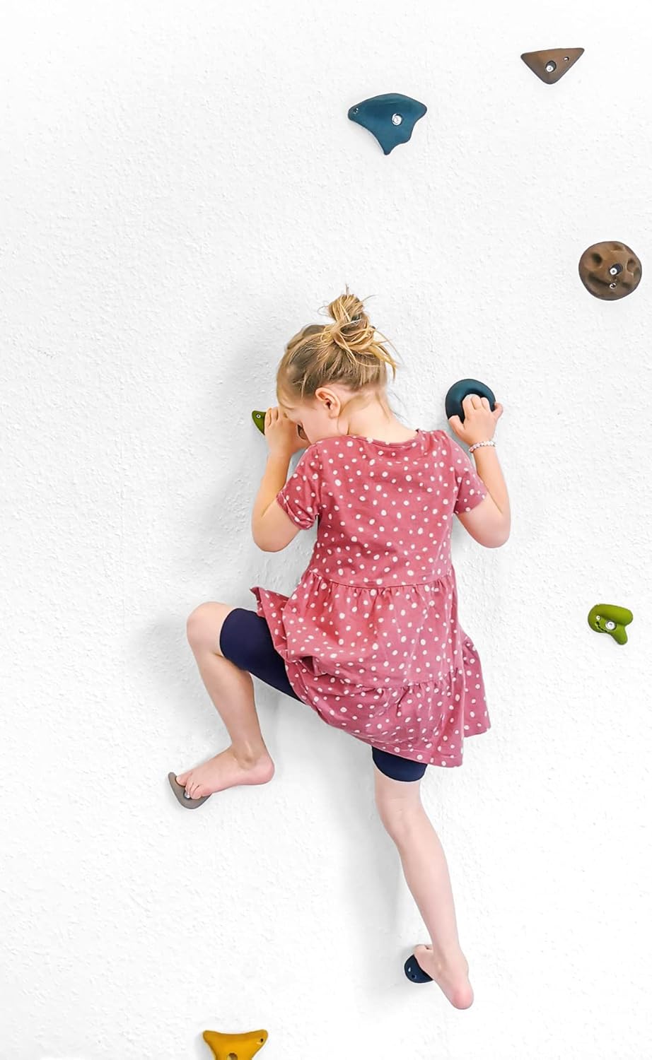 For climbing enthusiasts! With these 10 sturdy plastic climbing grips in different shapes, it is possible to create very individual climbing routes on the walls. Thanks to the 2-point attachment, the climbing stones are protected against twisting. Combines particularly well with the indoor climbing wall "Adventure". Includes mounting material.