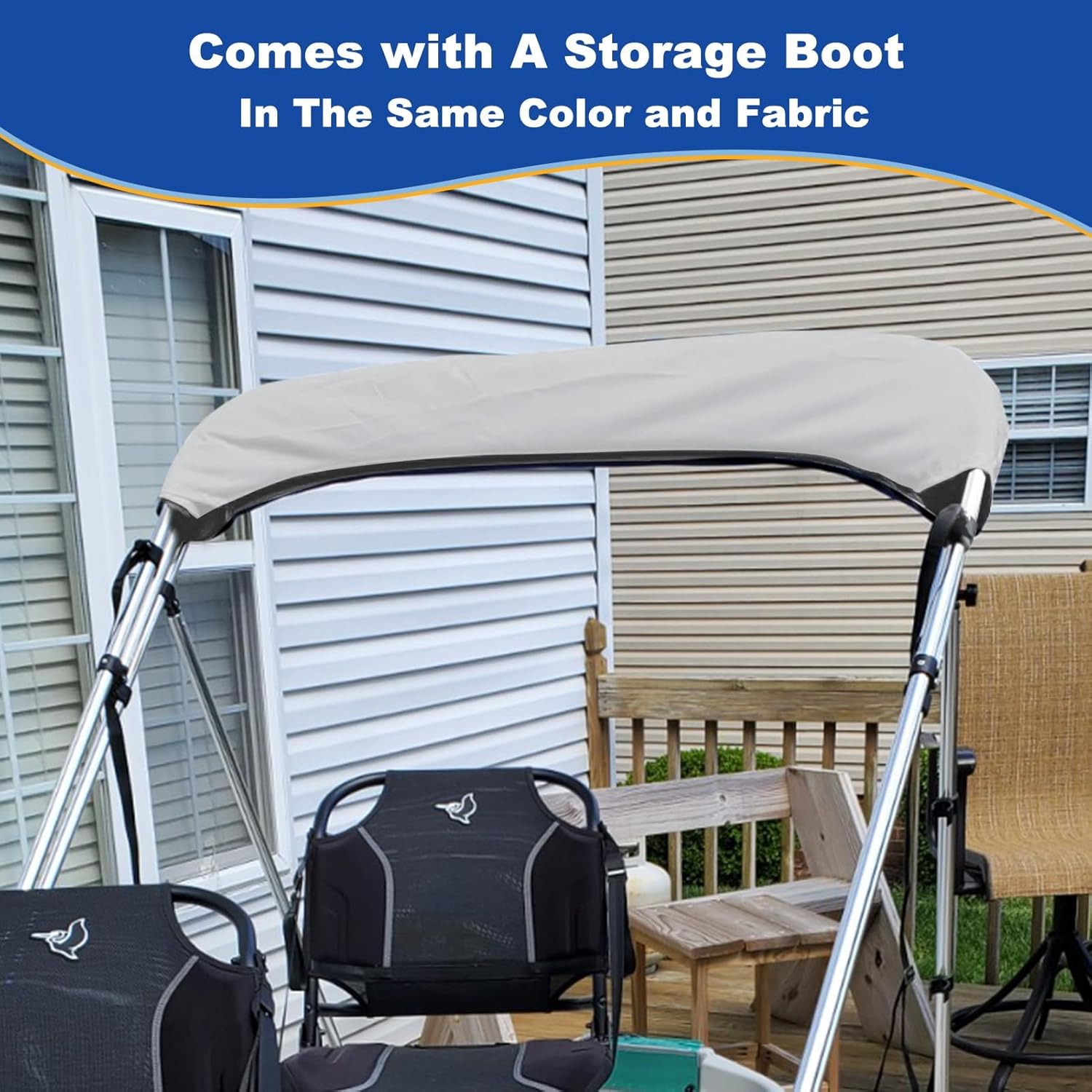 YimSting 3 Bow Bimini Top Replacement Canvas for Boat,900D Heavy Duty Waterproof Marine Sun Shade Canopy,Easy Install with Zipper Sleeves,Light Hole & Storage Boot, 6'L 54"-60"W Light Gray(No Frame)
