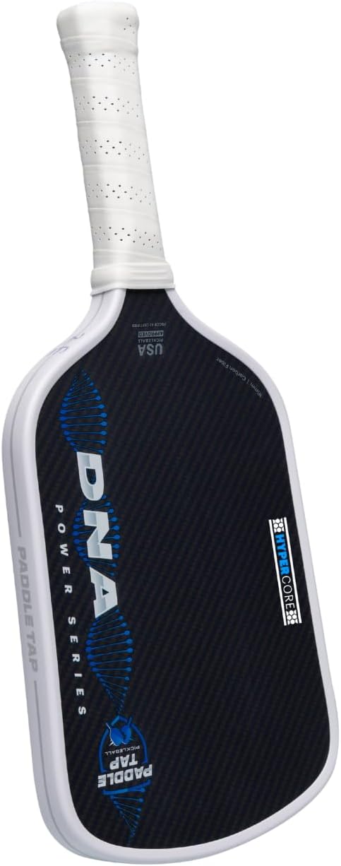 Designed for players who value stability, control, and confidence under pressure, the DNA Power Series HyperCore delivers a more solid, forgiving feel without giving up power. Built around a thicker 16mm core and enhanced perimeter support, HyperCore is engineered to expand the sweet spot, reduce vibration, and maintain consistency across every part of the face. The result is controlled, explosive performance with a smooth, low-sting feel — ideal for players who want precision, touch, and reliability in fast exchanges. Stability You Can Feel. Control You Can Trust. At the center of the HyperCore paddle is a black honeycomb core, engineered for a stable, ultra-reactive response. The 16mm thickness slows the ball just enough to improve dwell time, helping players stay connected on resets, drops, and touch shots while still delivering heavy drives when needed. This construction gives HyperCore its defining trait: controlled power with a confidence-inspiring sweet spot. Tri-Weave Hybrid Face Technology Like the FoamCore, HyperCore features Paddle Tap’s Tri-Weave Hybrid Face, combining Kevlar, carbon fiber, and fiberglass into a single bi-directionally woven surface. This advanced face design provides: Reliable spin generation Controlled, predictable power Tour-level durability The result is a consistent response across the face, allowing players to swing with confidence and maintain precision on both offensive and defensive shots. Enhanced Vibration Control and Torsional Stability The HyperCore paddle uses a dual-layered EVA perimeter vibration control system to enhance torsional stability and reduce impact shock. This perimeter reinforcement helps keep the paddle steady on off-center contact, expanding the effective sweet spot and reducing strain on the hand, elbow, and shoulder. This design is especially noticeable during longer rallies and defensive exchanges, where comfort and control matter most. Elongated Offers added reach and leverage, ideal for players who want controlled power on serves, drives, and two-handed backhands. USA Pickleball Approved The DNA Power Series HyperCore paddle is USA Pickleball Approved (PBCoR .43) and legal for tournament play.