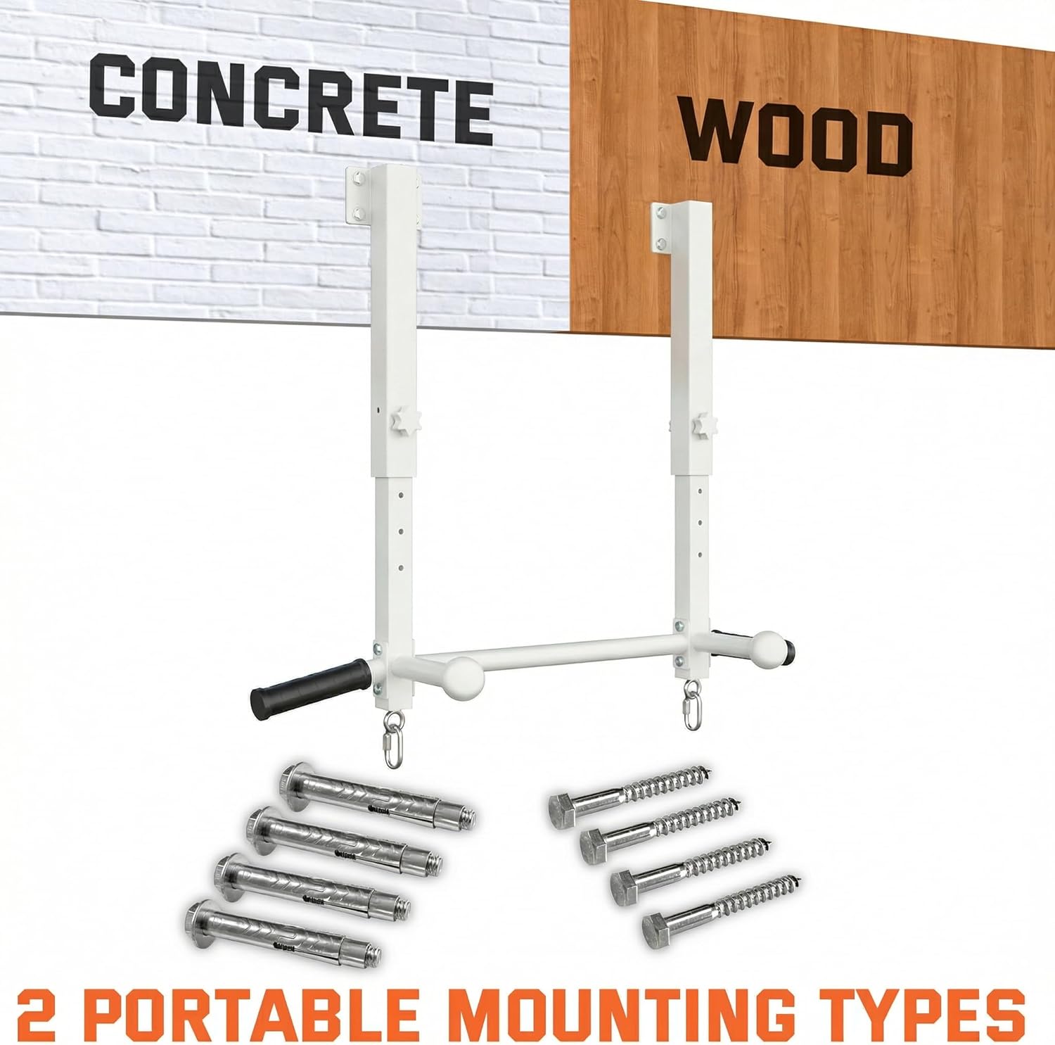 Experience the ultimate in strength training and versatility with the HWOOUSA Joist Mounted Pull Up Bar. Designed for heavy-duty use, this pull-up bar is constructed with high-quality steel, providing exceptional durability and stability. Mount this pull up bar high on your ceiling joists, making it perfect for tall users. With its high 800 lbs capacity and generous adjustable clearance (up to 26 inches), it provides ample space and security for a complete workout, you can confidently push yourself to achieve your fitness goals. The pull-up bar features a protective sprayed coating that prevents rust and corrosion, ensuring a long-lasting lifespan. The high quality handles offer a comfortable, anti-slip, and wear-resistant grip, enhancing your overall workout experience. The multiple grip options, including wide, narrow, neutral, ball finger, and hammer grip, allow you to target different muscle groups and vary your workouts. Additionally, the included carabiners make it versatile for resistance training, suspension training, and strength training. The unique ball finger grip is specifically designed to train finger strength and endurance, making it ideal for climbing, martial arts, and other sports. This feature also helps improve your grip and prevent injuries. The HWOOUSA joist mounted pull up bar comes with pointed and expansion screws, making it suitable for mounting on secure and sturdy wood or concrete beams. Whether you're looking for an outdoor, over-the-joist, or wall-mounted pull-up bar, this all-in-one solution has got you covered. The adjustable height and space-saving design of the garage pull up bar allow you to customize the support arms in five positions and adjust the distance from the mounting surface between 18 to 26 inches. This flexibility ensures a perfect fit for your space and workout preferences.