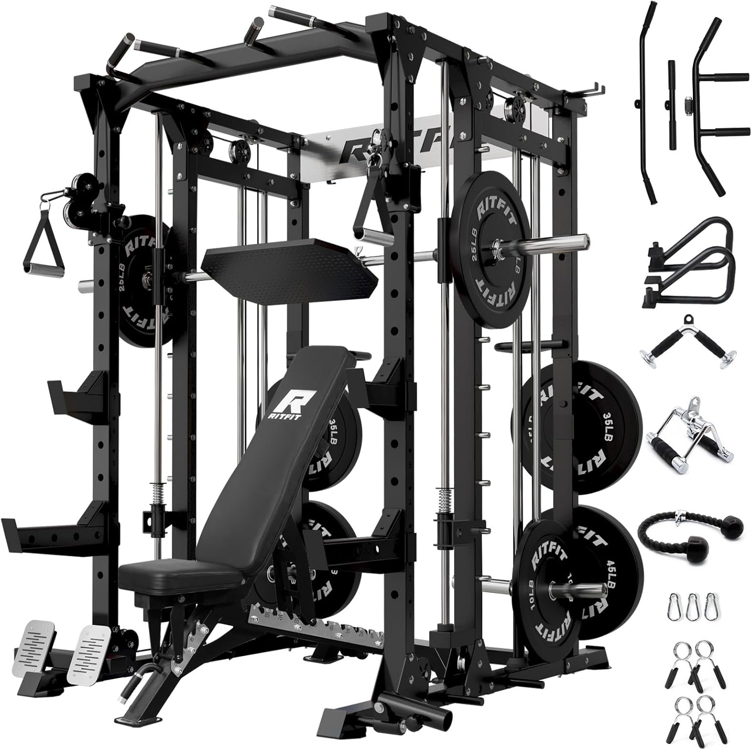 RitFit Buffalo Smith Machine, Power cage with LAT-Pull Down System & Cable Crossover System, All-in-One Squat Rack for Home Gym, Power Rack and Packages
