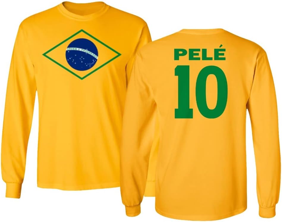 Pele 10 Brazil Soccer GOAT Jersey Style Tribute Long Sleeve T-Shirt