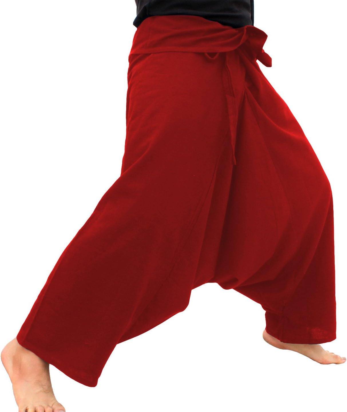 Genuine high quality RaanPahMuang brand product, hand made in Thailand under Fair Trade conditions. We take care of attention to detail to ensure you receive a high quality yet ethical item.Measurements:- Given sizes are approximations only, exact measurements may vary.- Size tags sometimes do not match the advertised size.- To compare sizes take a similar item of your own that fits well and lay it flat, smooth it out and use a tape measure to measure straight across, making sure the tape measure is tight.- You may need to leave extra room for bulky items or for movement.- Mao hill tribe pants are suitable for both men and women.- Mao pants have wide baggy hips and thighs, and the inseam is extremely low cut, so these do not need to be considered when judging your size.- Waist is measured around the pants at the absolute top. We have given the range we judge this pair can be worn by as well as the sweet spot in the middle which is normally the waist measurement to aim for.SmallWaist range: 28-36inches (71-91cms)Waist sweet spot: 32inches (81cms)Length: 42inches (106cms)MediumWaist range: 32-40inches (81-101cms)Waist sweet spot: 36inches (91cms)Length: 42inches (106cms)LargeWaist range: 34-42inches (86-106cms)Waist sweet spot: 38inches (96cms)Length: 42inches (106cms)X-LargeWaist range: 38-48inches (96-123cms)Waist sweet spot: 43inches (109cms)Length: 43inches (109cms)Fabric: Muang CottonReasonably thick cotton, can shrink and the colours may run, especially on the first few washes.