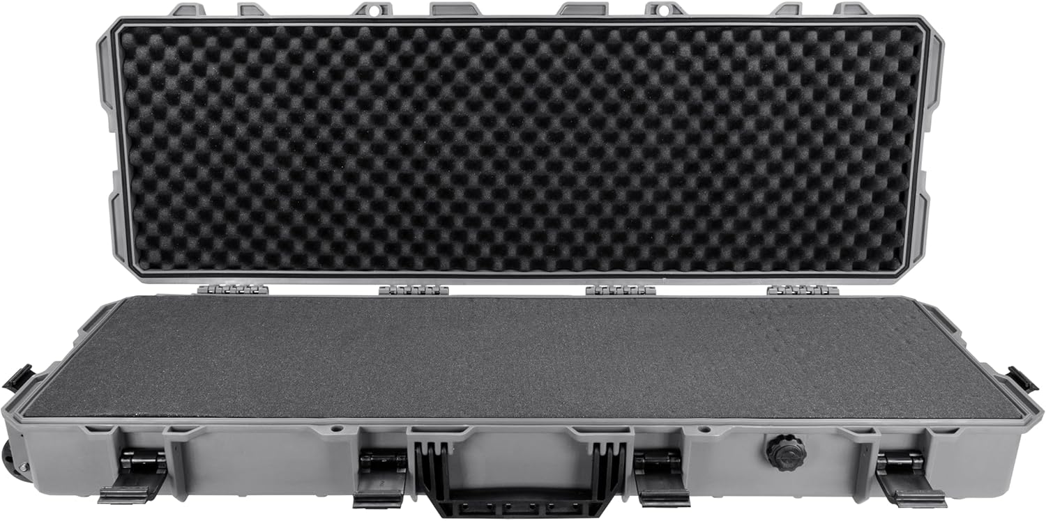 Introducing the Intact 40-inch protective rifle hard case from Eylar, perfect for securely transporting or storing your rifles. Along with its superior durability, this case offers a unique design feature: a durable, patriotic UV-printed image on the lid. This high-quality graphic is directly printed onto the case with a UV printing technique, providing a scratch-resistant finish that will hold up under normal wear. This ensures that your custom image remains vibrant and protected, adding a personalized touch while maintaining the case's rugged durability. Designed for easy portability, the case features external dimensions of 39.8" x 16.49" x 6.69" and internal dimensions of 36.49" x 14.01" x 5.98", providing ample space for your firearms. Crafted from reinforced high-pressure polypropylene plastic, the case offers exceptional protection. It includes 4 pieces of foam padding: 1 convoluted foam, 2 pull-and-pluck foam layers, and 1 solid bottom pad to ensure your rifles stay secure during transport. Additionally, the case includes two padlock-adaptable fittings and integrated solid roller wheels, offering secure storage and convenient transportation options, whether at home or on the go.