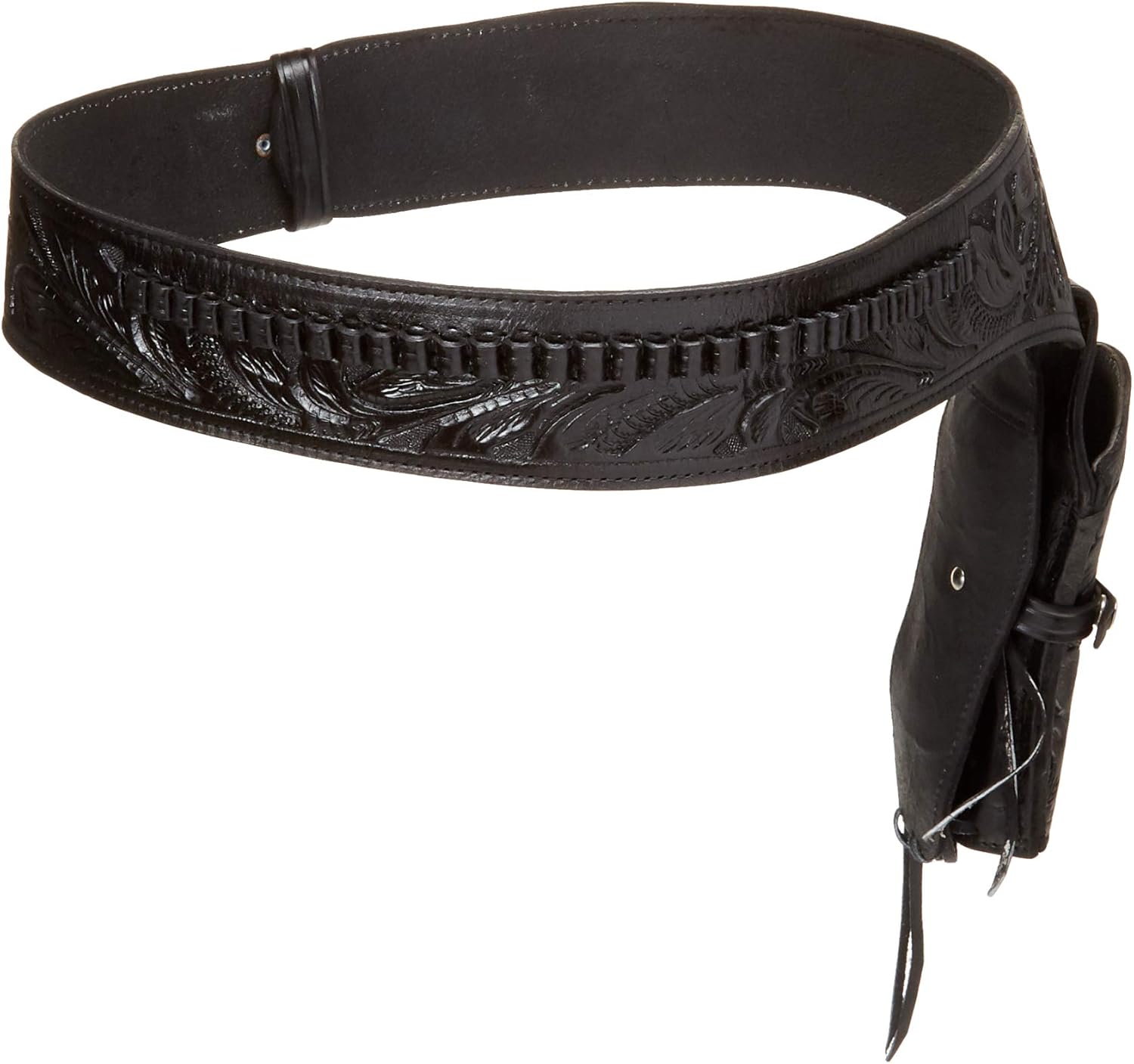 These western style cowboy holsters are magnificently hand crafted out of the highest quality genuine leather with superior durability. These holsters have an adjustable trigger strap and the ability to mold to fit any model 22 caliber gun holster.The holster will hold up to a 4"-6" barrel perfectly. If you have a longer barrel it will still work, but the barrel will stick out of the bottom of the holster. This cowboy action rig holster is also equipped with a tie down strap to tie around your leg to keep the gun from any unwanted movement. This holster is great for all you sass shooters and re-enactment enthusiasts. It is perfect for all of your single action shooter competitions. Due to the hand made nature of this product there will be some variation in color and tooling. Choose 2 belt sizes above you pant size for the correct fit.(Example 38 pant =42 belt) *Fits just about any 22 caliber including Heritage Rough Rider .22 Caliber Smith & Wesson Model 17 .22 Caliber Smith & Wesson Model 48 .22 Caliber