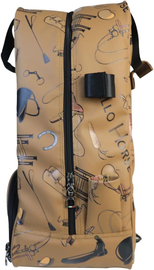 UNISTRENGH Professional Horse Riding Boot Carry Bag Helmet Bag Portable PU Leather Equestrian Horse Riding Backpack with Hat CompartmentStructure:1. Material: PU leather, waterproof and tear resistance. 2. Separate pocket for boots. Helmet pocket and built-in accessories pocket at the front3. Horse whip pocket at one side, the main bag for the horse breeches and gloves pocket etc4. Thicken and waterproof liner 5. Comfortable soft carry handle6. Adjustable and removable shoulder strapGreat suitable for horse riding, hunting,camping,traveling,riding games,etc Feature:1. Made of high-quality waterproof pu leather, tear resisting and durable, also good waterproof effective.2. Large Capacity,Big Space. There is a helmet compartment in the side of the equestrian bag,can placed knight helmet and accessories.3.This product is great for keeping essentials together, this padded gear bag accommodates boots, riding hat and whip in separate sections.Dimension:Horse riding boot carry bagFull Size:17.71''L x 20.86''H×7.87''W (45×53×20cm)Helmet compartment: 7.87''L x 11.81''H x 5.9''W(20x30x15cm)Equestrian backpackFull Size:13.38''L x 20.08''H×7.08''W (34×51×18cm)Package Included:1× Equestrian BagPls Notes:1. Pls pay attention to the size before purchasing.2. Tolerance: manual measurement, within 0.39"-0.79" deviation3. About color: as a result of shooting light and display different factors,in kind with the picture there is some color difference, please understand. In kind, we will try our best to adjust the color of the product to minimize the error.