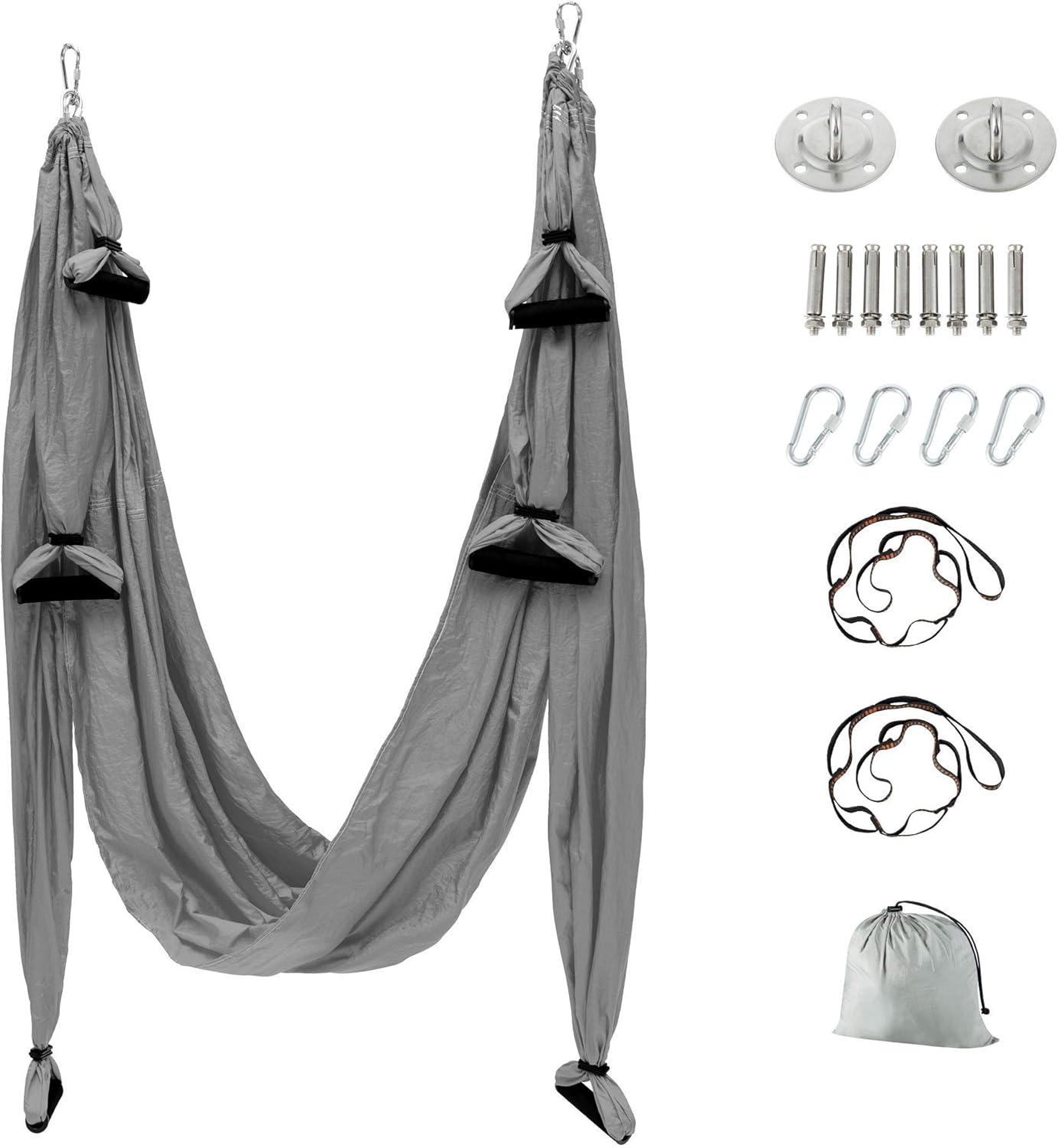 Maxwelly Yoga Swing is a powerful back pain relieving inversion device. Get the most powerful & natural back pain relief in the comfort of your home. No need for surgeries or medications! Perfect Tool to Keep Fit and Reduce Weight Suitable for professional yoga studio and personal exercise at home, whether using it for inversion therapy of spinal decompression or upper body strength building such as using it as a dip stand, the versatile aerial yoga sling is sure to invigorate your health. The Yoga strengthens and loosens the muscles surrounding the spine naturally, allowing your spine to breathe and heal. The works in three main ways: 1. Traction: The Yoga creates natural, body weight traction - the safest and most effective kind. 2. Back and core strengthening: For dynamic, deep core strength, nothing compares to inverted, gravity resistance training. 3. Flexibility: Just hang back, grab your ankles and chill out. This is the safest, deepest backbend you could ever do unassisted (and painless). Multiple Uses It come with 2 sturdy extension straps, so that you can set up antigravity hammock in minutes on an exposed beam on a tree with the two included extension straps as an outdoor hammock. It must be a good way of getting close to nature and relaxing yourself. Safety Promise Your safety is our priority. Maxwelly yoga designed with 4 alloy hooks, which connect the seat and the two arms firmly and makes it very easy to assemble. Durable Maxwelly yoga swing made of high strength and high quality parachute material fabric and polyester taffeta, the flying yoga hammock is heavy duty and durable, its max load-bearing capacity is up to 450 lbs / 200 KG.