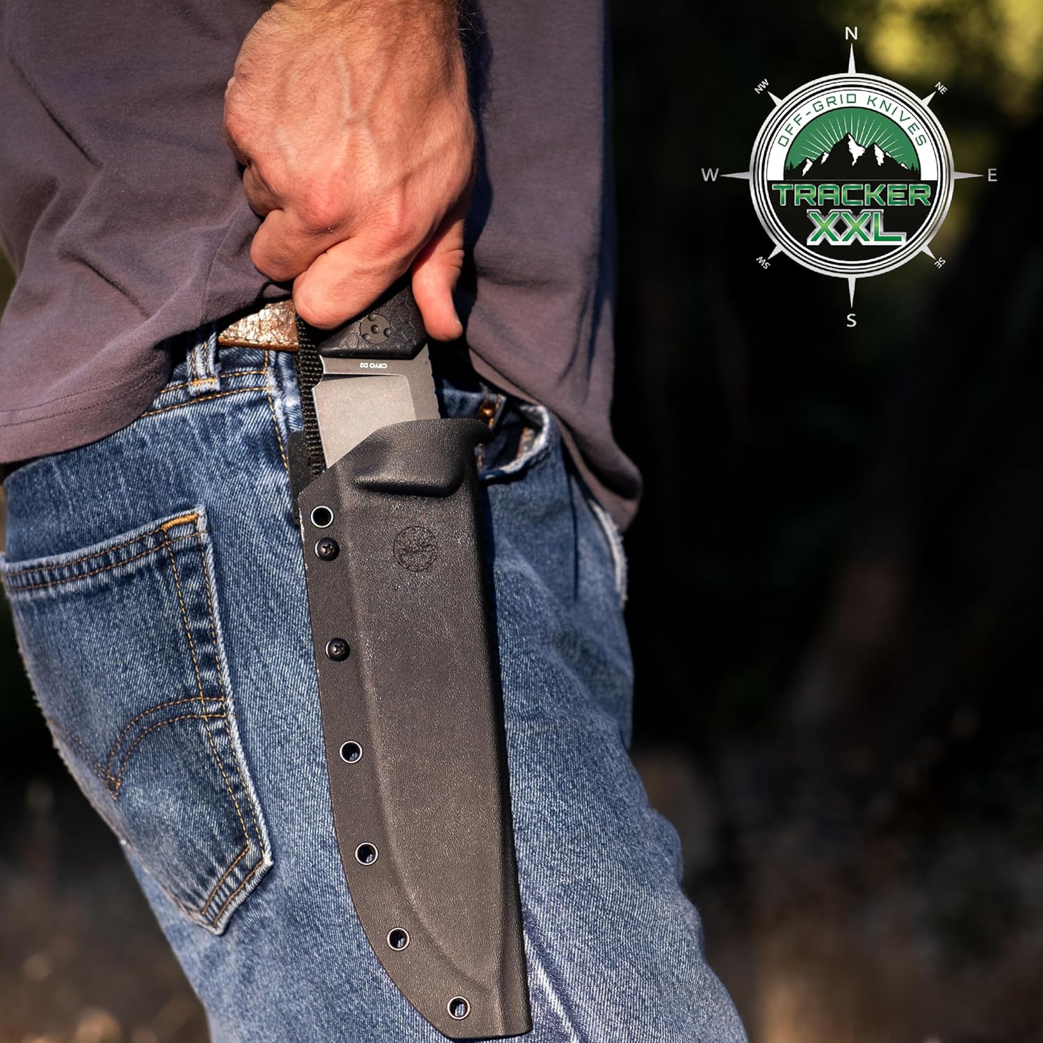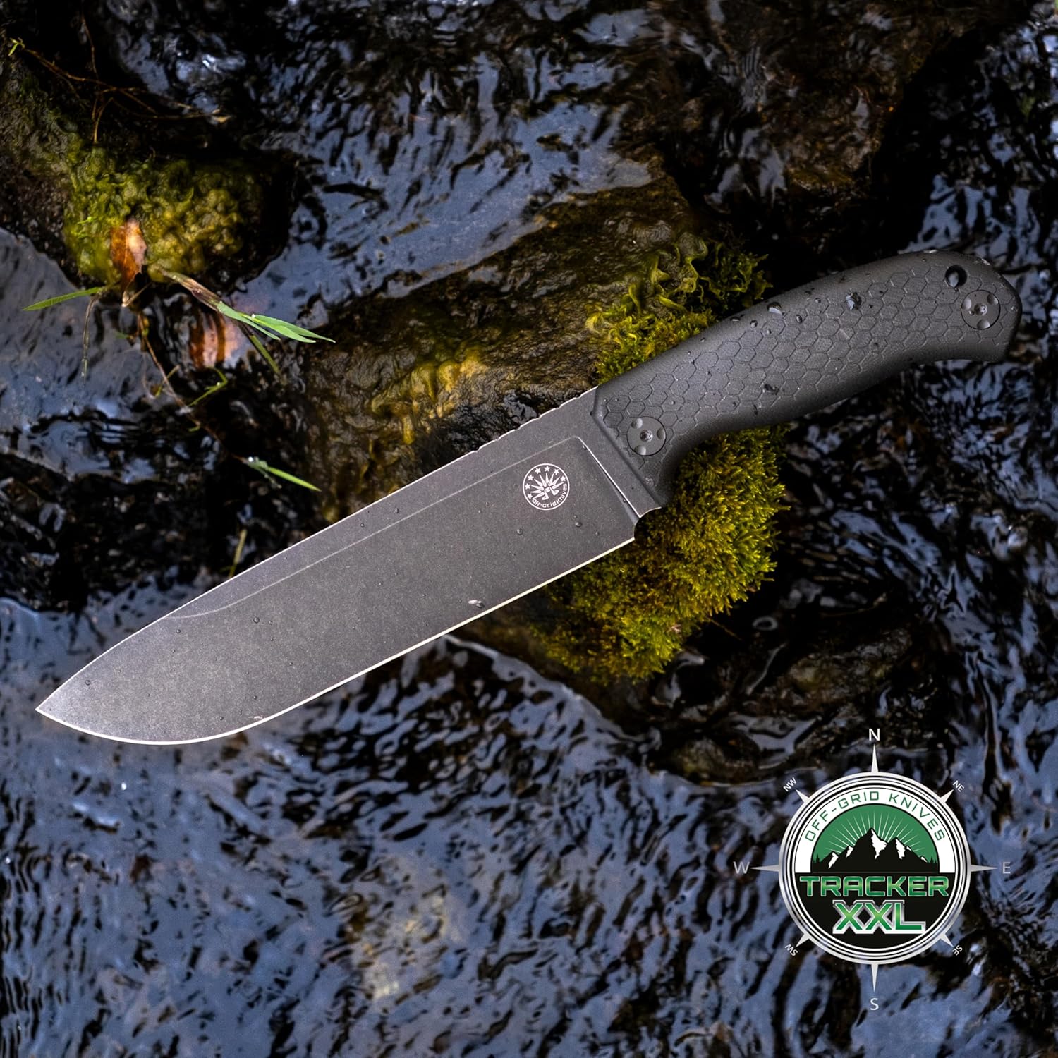 Off-Grid Knives Tracker-XXL โ The Ultimate Chopper The Tracker-XXL is the big brother of the Tracker-X3, bringing unmatched power, durability, and versatility to the outdoors. With an impressive 7.5-inch blade, this is the largest blade Off-Grid Knives has ever produced, designed for heavy-duty chopping, brush clearing, and firewood processing. Whether you're tackling camping chores, survival tasks, or backcountry adventures, the Tracker-XXL delivers relentless cutting performance in a compact, highly functional form. Inspired by machete-style chopping power, but in a more manageable size, the Tracker-XXL bridges the gap between a bushcraft knife and a full-sized survival tool. It's built for those who demand strength, reliability, and efficiency in the wild.
