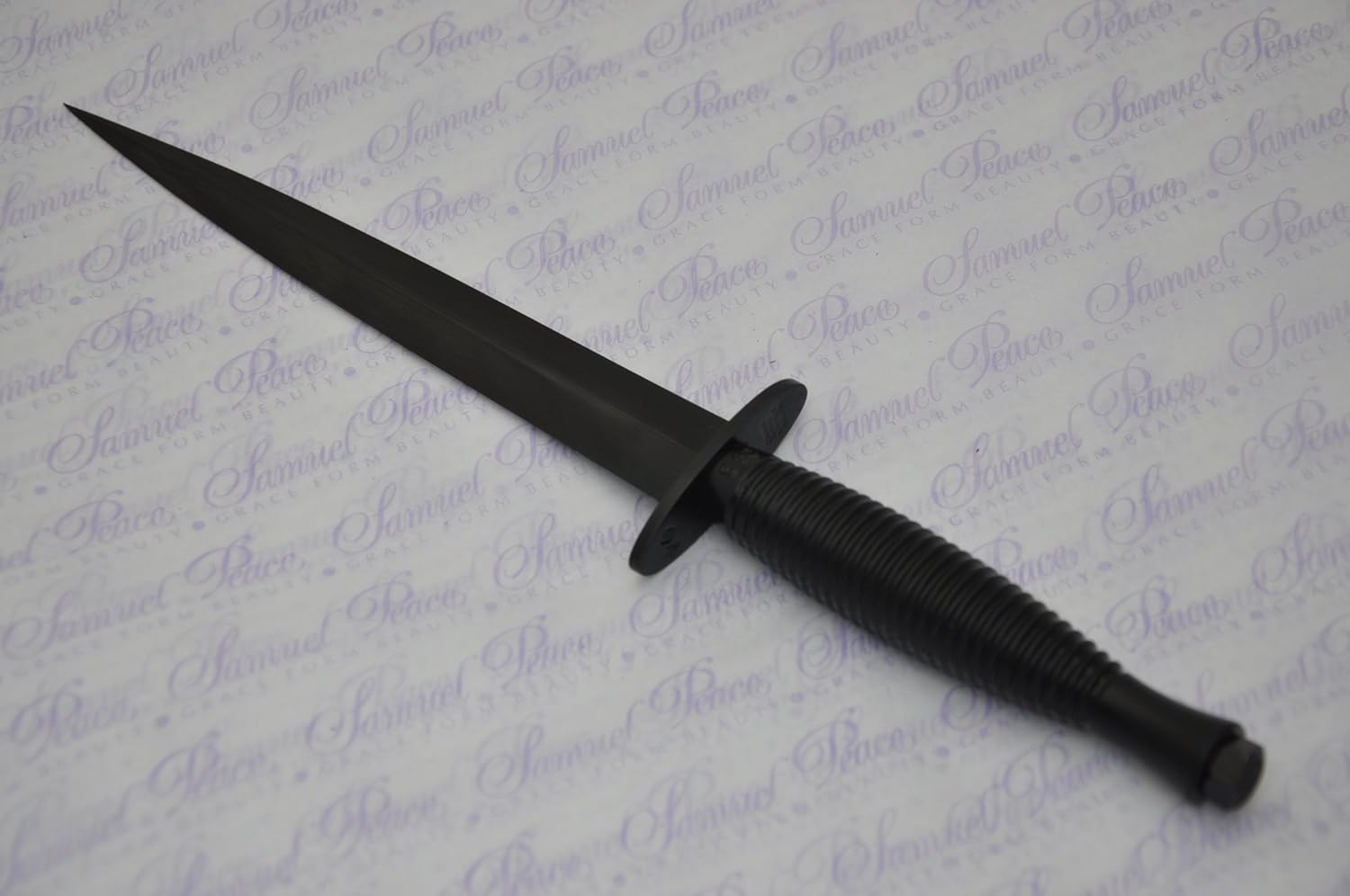 THANK YOU FOR YOUR TIME, WE ARE A GENUINE KNIFE MAKING AND CUTLERY MANUFACTURING FACTORY IN SHEFFIELD ENGLAND THE COMPANY WAS STARTED BY MY GRANDFATHER OVER 70 YEARS AGO, SO THE LISTING GOES PLEASE BE AWARE THIS KNIFE IS ALL HANDMADE IN SHEFFIELD IT IS NOT SOME TOY FROM CHINA!! THIS IS A NEW GENUINE THIRD PATTERN BRITISH ARMY COMMANDO KNIFE BLACKED BLADE. GENUINE STANDARD BRITISH ARMY COMMANDO ISSUE A VERY COLLECTABLE ITEM, S.A.S STANDARD. DIAMOND BLADE. RIBBED HANDLE. IT IS BLACKED BECAUSE IT IS CARBON STEEL AND WILL GO RUSTY IN COMBAT CONDITIONS ALSO SO THE ENEMY CANNOT SEE THE REFLECTION IN THE DARK. IT HAS J NOWILL AND SONS SHEFFIELD STAMPED ON THE DIAMOND GUARD . A DIAMOND[MODEL NUMBER] AND THE CROWS FOOT [WAR DEPT] IT AS THE CROSS KEYS ON THE HANDLE IT MEASURES 30CM AND WEIGHS 264 GRAMMES. INCLUDES PROTECTIVE LEATHER LEG SHEATH. PLEASE VIEW MY OTHER ITEMS KIND REGARDS LEE