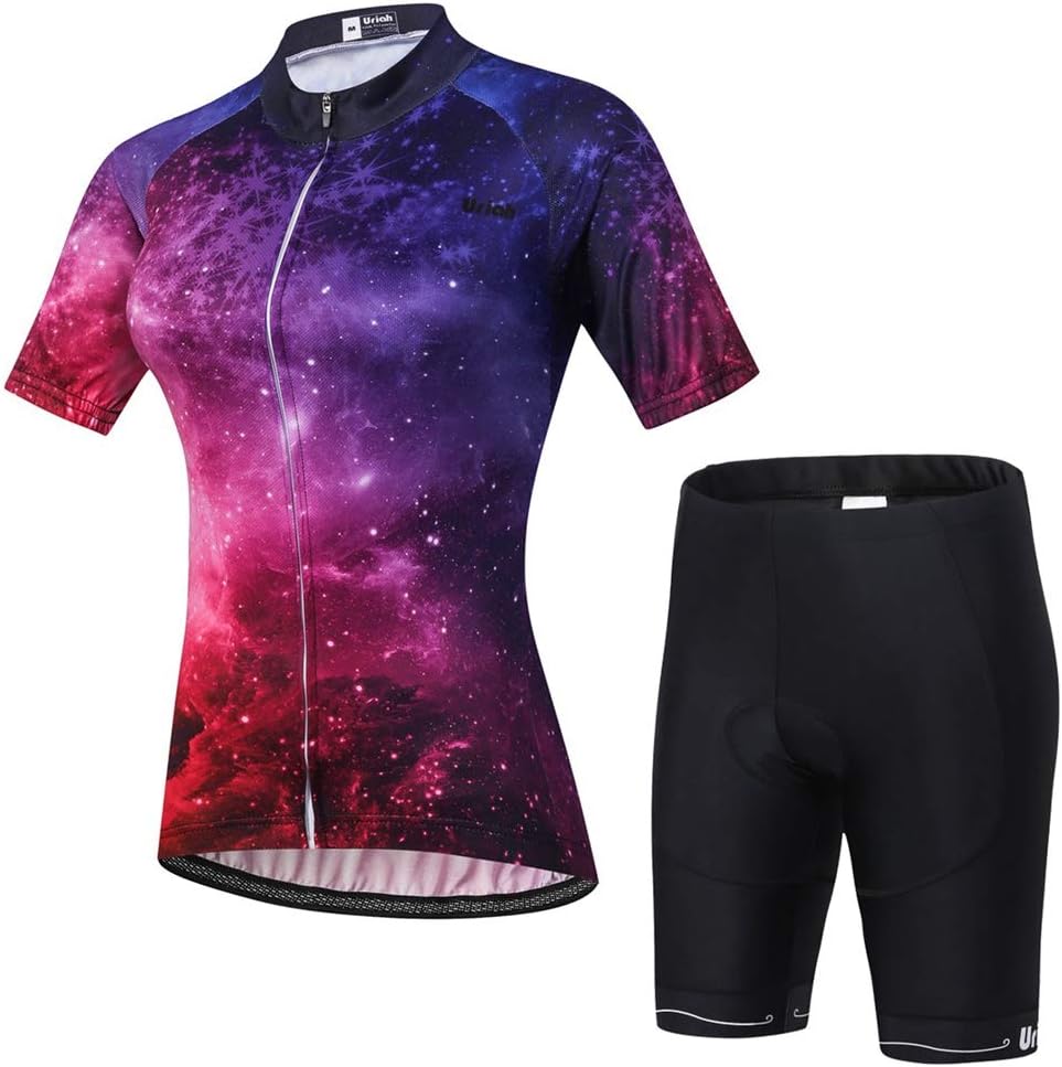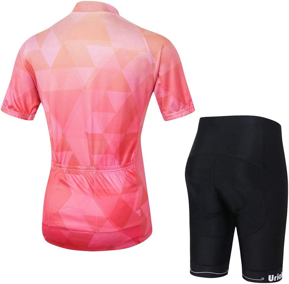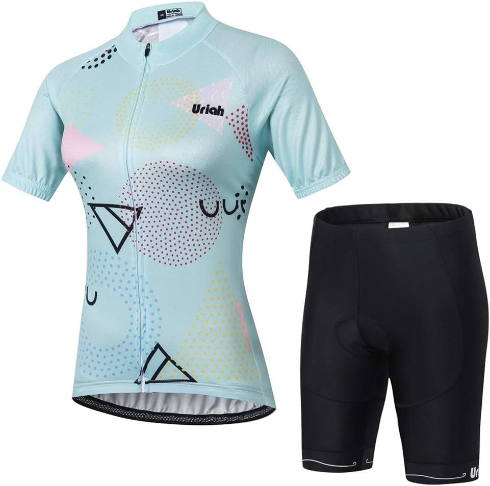 Uriah women's short sleeve cycling jersey is made of polyester fabric which has strong moisture wicking ability. The Shorts are made of Polyester and Lycra fabric with 3D gel pad. 3D structure and innovative design increase the evaporation of sweat and cooling area which can create a ideal air layer to make you stay dry and cool. Washing Tips: 1.Do not bleach2.Dry cleaning3.Hanging dry4.Ironing temperature below 150 degrees centigrade 5.Washing at room temperature under 30 degrees centigrade Kindly Notes: 1.Sizes belong to manual measurement and they are measured in flat-laid position (Unit: Inch); 2.This is not standard US Size Please view the size chart image or contact us before taking your order; 3.You can mix up the size of jersey and shorts if you like; If you have any other concerns about the product, please feel free to contact our Uriah Customer Service and we will try our best to help you. Package Includes: 1 x Cycling Jersey Short Sleeve 1 x Cycling Shorts with 3D Gel Pad